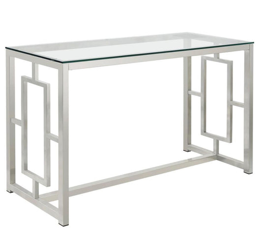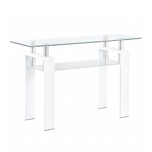 DYER Rectangular Glass Top Entryway Sofa Console Table White
