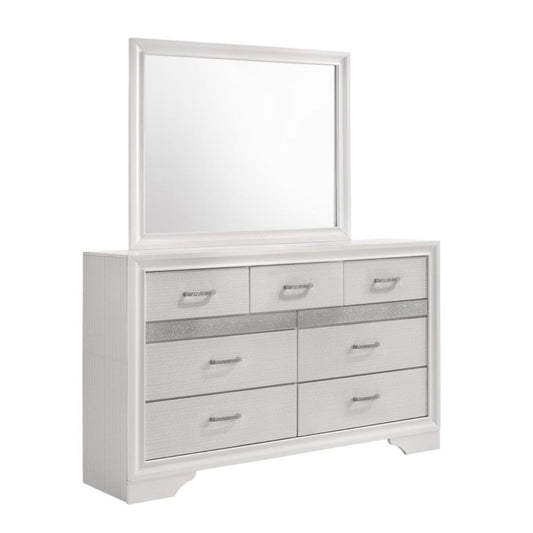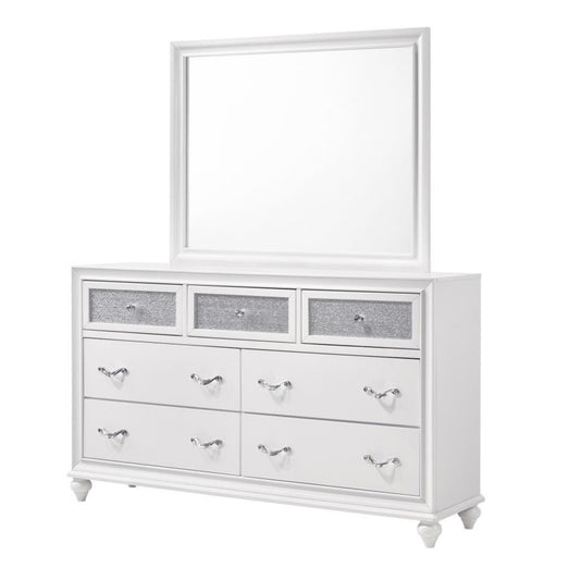 MIRANDA 7-drawer Dresser with Mirror White and Rhinestone