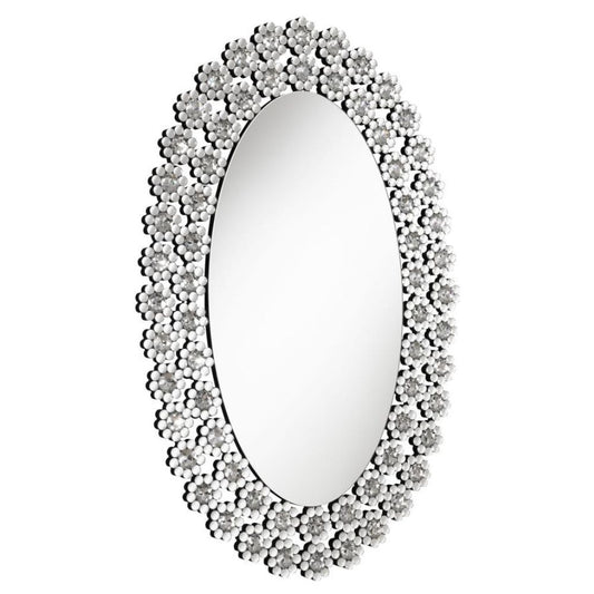 COLLEEN Oval Wall Mirror Crystal Flowers Silver