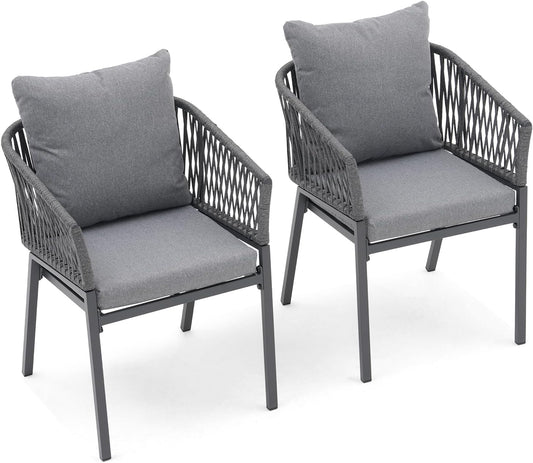 REVIX Patio Dining Chairs with Cushion Set of 2 Dark Grey