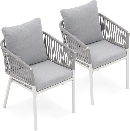 REVIX Patio Dining Chairs with Cushion Set of 2 Light Grey