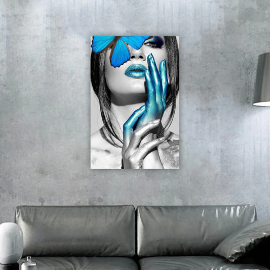 ROGER Blue Butterfly on Woman Glass Wall Art