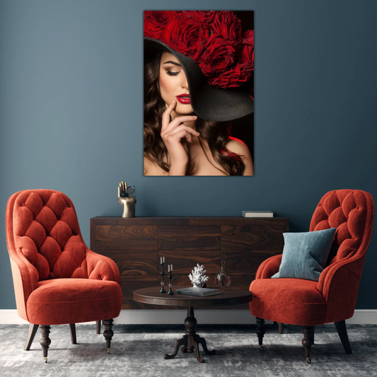 VIDA Red Rose Hat Glass Wall Art