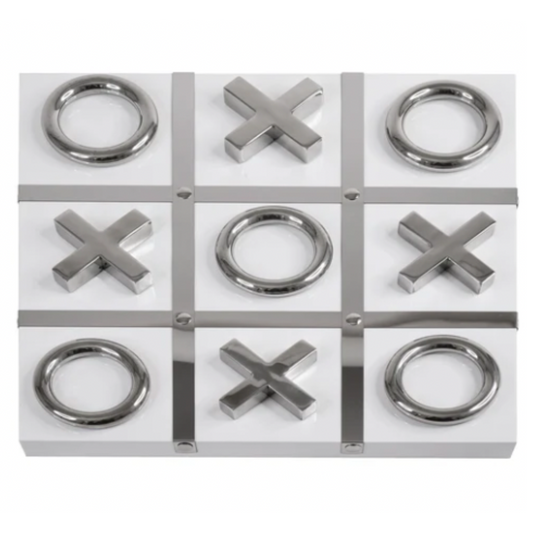 AIDEN Stainless Steel Tic Tac Toe Tabletop Decorative Game Set White