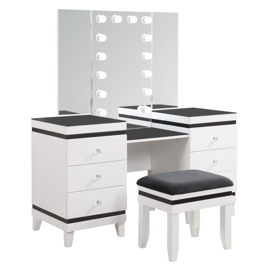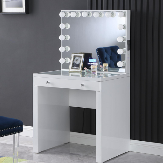 ANTON Vanity Desk with Bluetooth Hollywood Mirror White