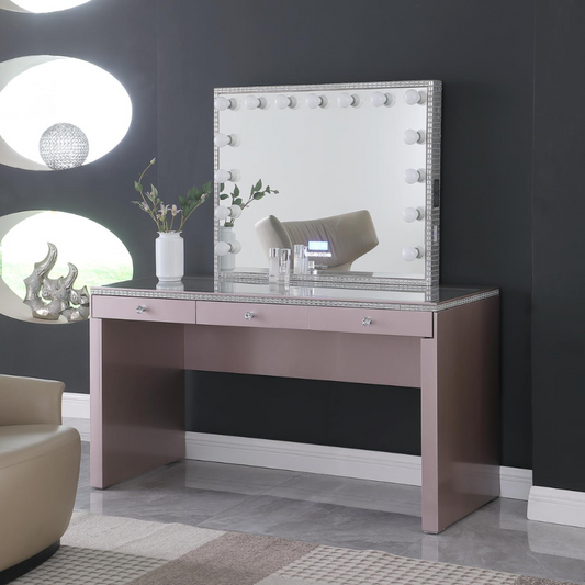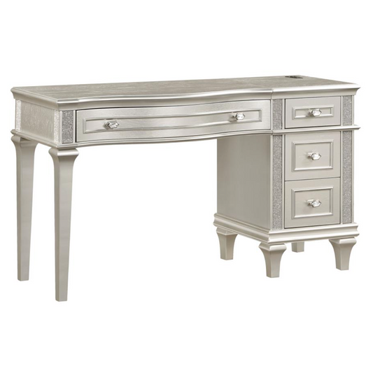 EVANGELINE 4-drawer Vanity Table with Faux Diamond Trim