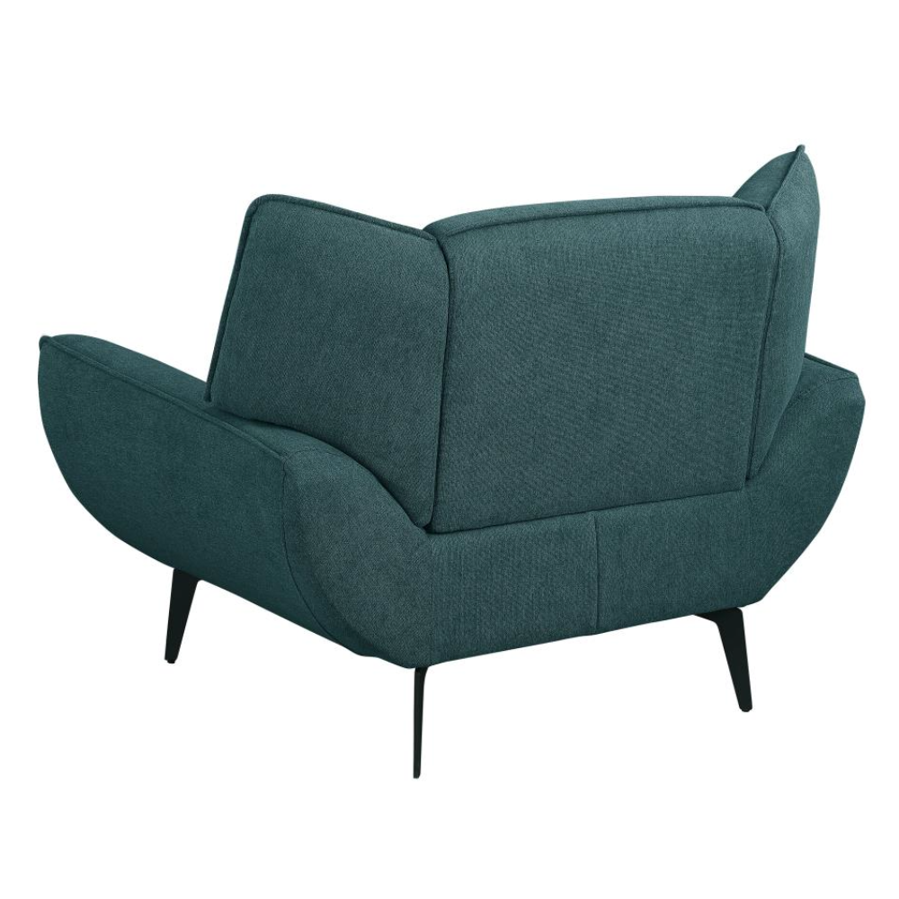 - Mid-Century Modern Vibes: Teal fabric upholstery with flared arms and wing backs for a retro-inspired look.