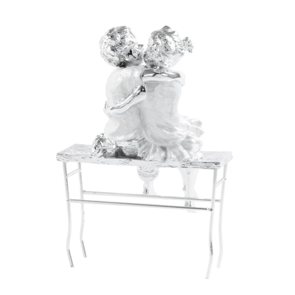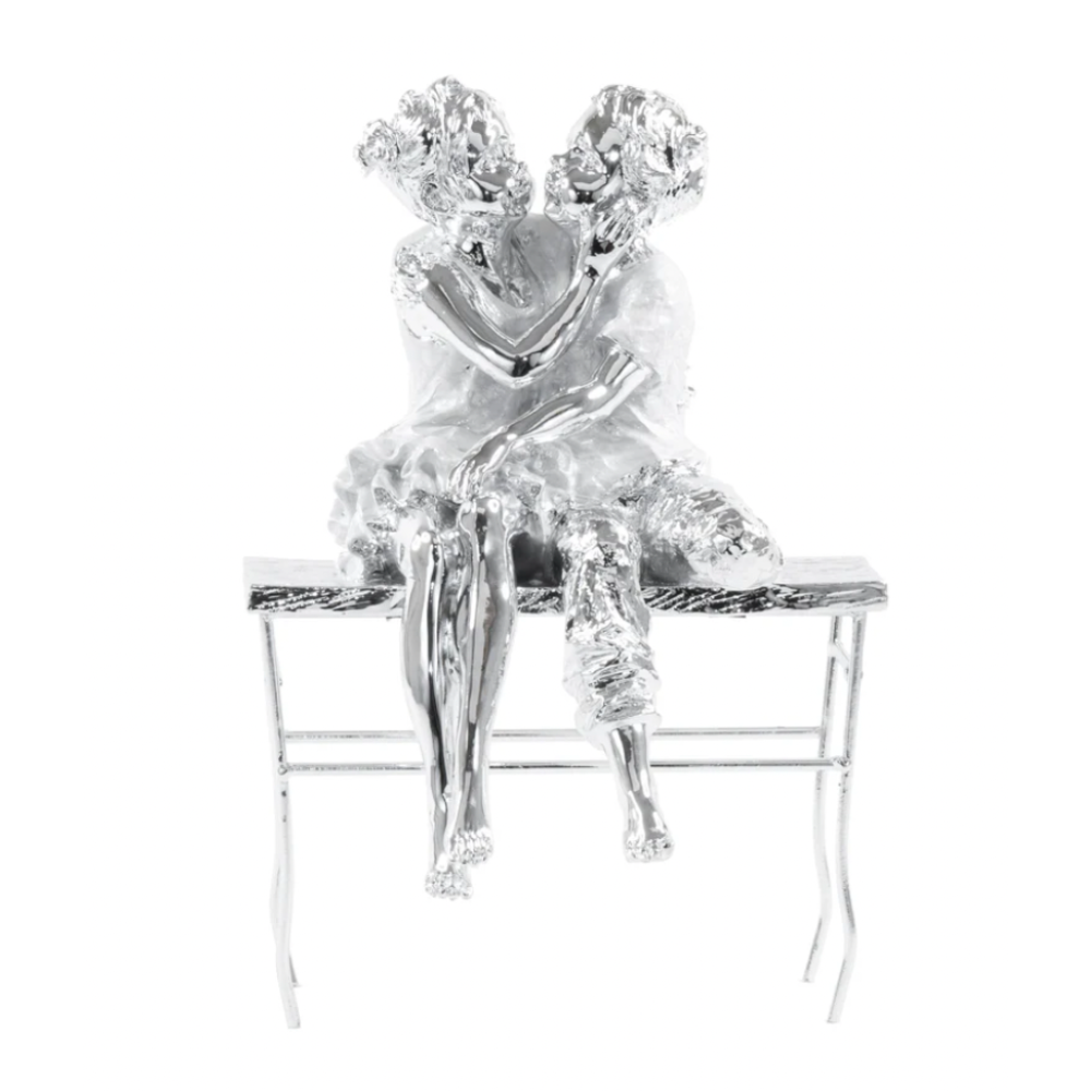Celebrate the beginning of a beautiful love story with this Flawless Silver Modern Couple Sculpture. Depicting a couple sitting on a bench, this heartwarming piece adds a touch of elegance to any table in your home or office. Crafted from 100% polyresin and finished with a sleek silver polish, it’s a perfect blend of romance and sophistication.