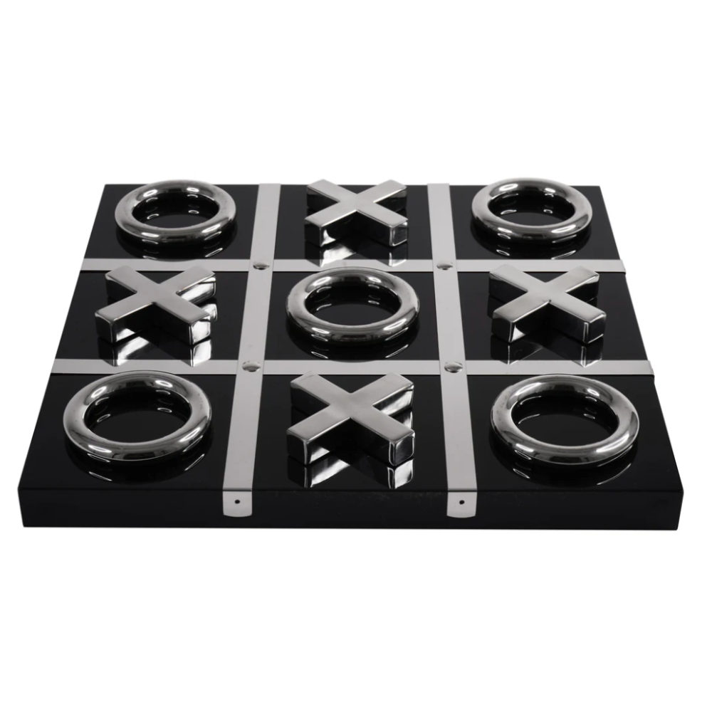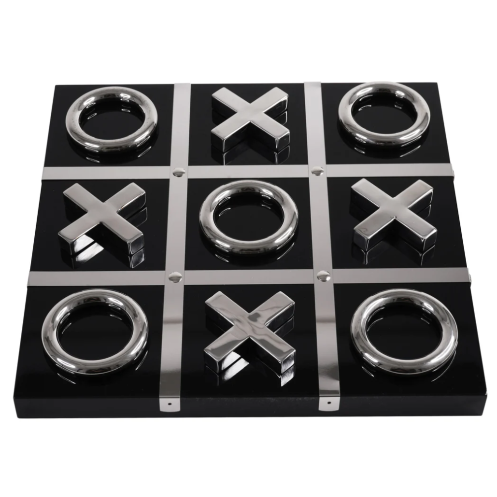 AIDEN Stainless Steel Tic Tac Toe Tabletop Decorative Game Set Black