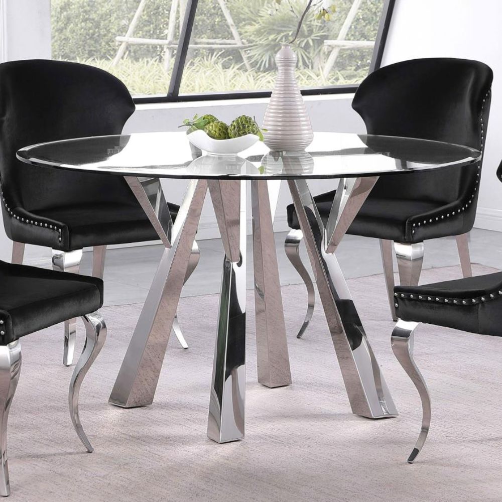 - Sophisticated Design: Alaia round dining table with a geometric metal base and chrome finish for a luxurious feel.