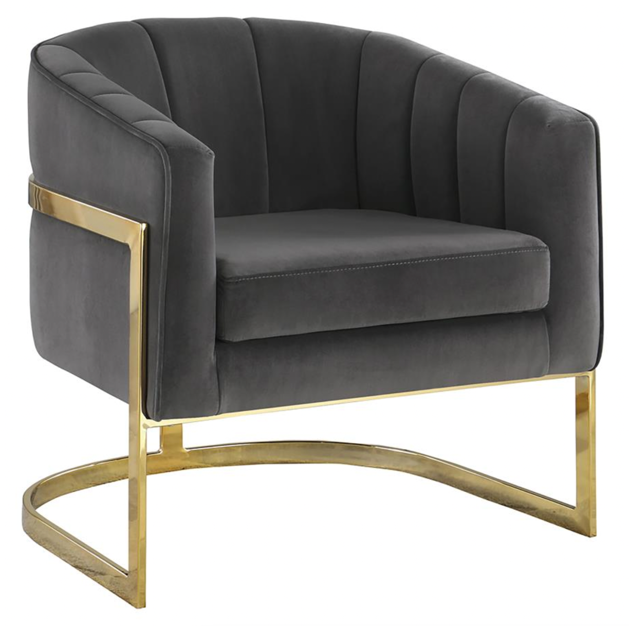 - Bold Gold Frame: The chair is supported by a bold gold frame that adds a touch of glamour and sophistication to any space, ensuring that this piece will never go unnoticed wherever it is placed.