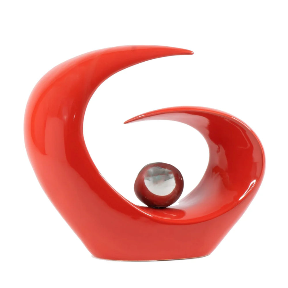 Refined modern waves clash in this stunning Abstract Sculpture, where a lustrous silver sphere sits gracefully between, symbolizing a perfect harmony of chaos and tranquility. This eye-catching piece is ideal for adding a contemporary touch to your modern office or living space. Crafted from the highest quality polystone material and finished in a sleek high-gloss white, this sculpture is a true conversation starter.