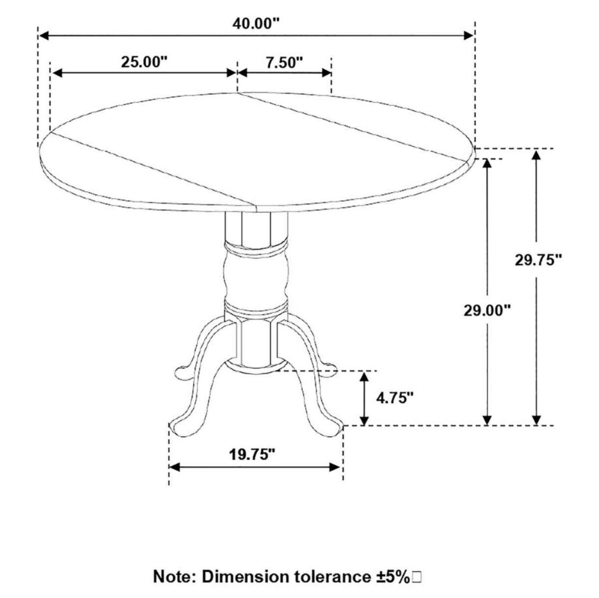 - Dining Table Size: W25.00" x D40.00" x H29.75"