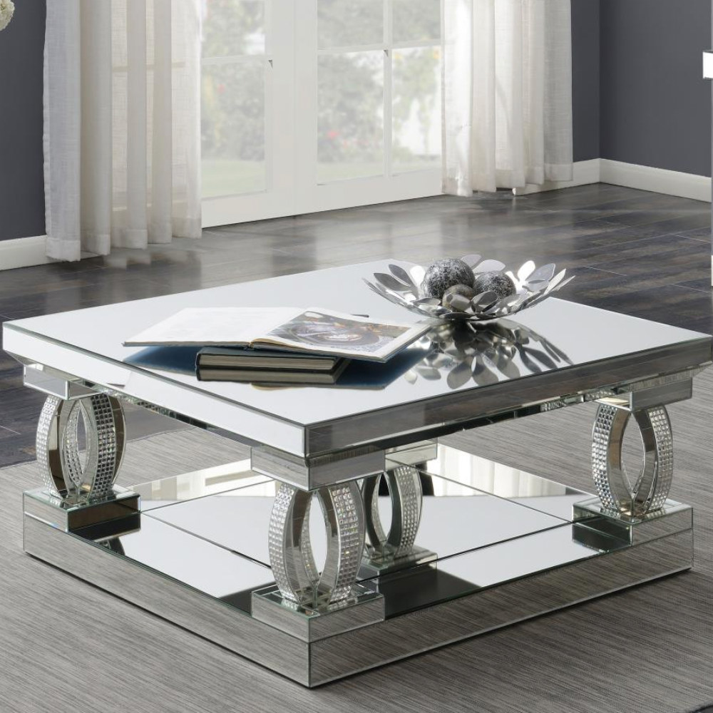 AMALIA Square Mirrored Acrylic Crystal Coffee Table