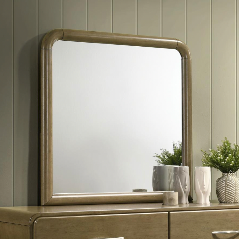 Complete your bedroom with this elegant dresser mirror, designed to bring light and sophistication to your space. The rounded frame and curved top create a soft, harmonious silhouette, while the warm nutmeg wood finish adds an inviting touch. Perfect for both modern and traditional settings, this mirror enhances depth and brightness, making your room feel more open. Built from durable materials, it’s a lasting accent that pairs beautifully with any dresser.