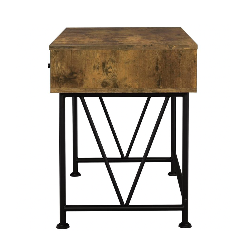 - Eclectic Industrial Design: Warm antique nutmeg finish with bold black metal framework