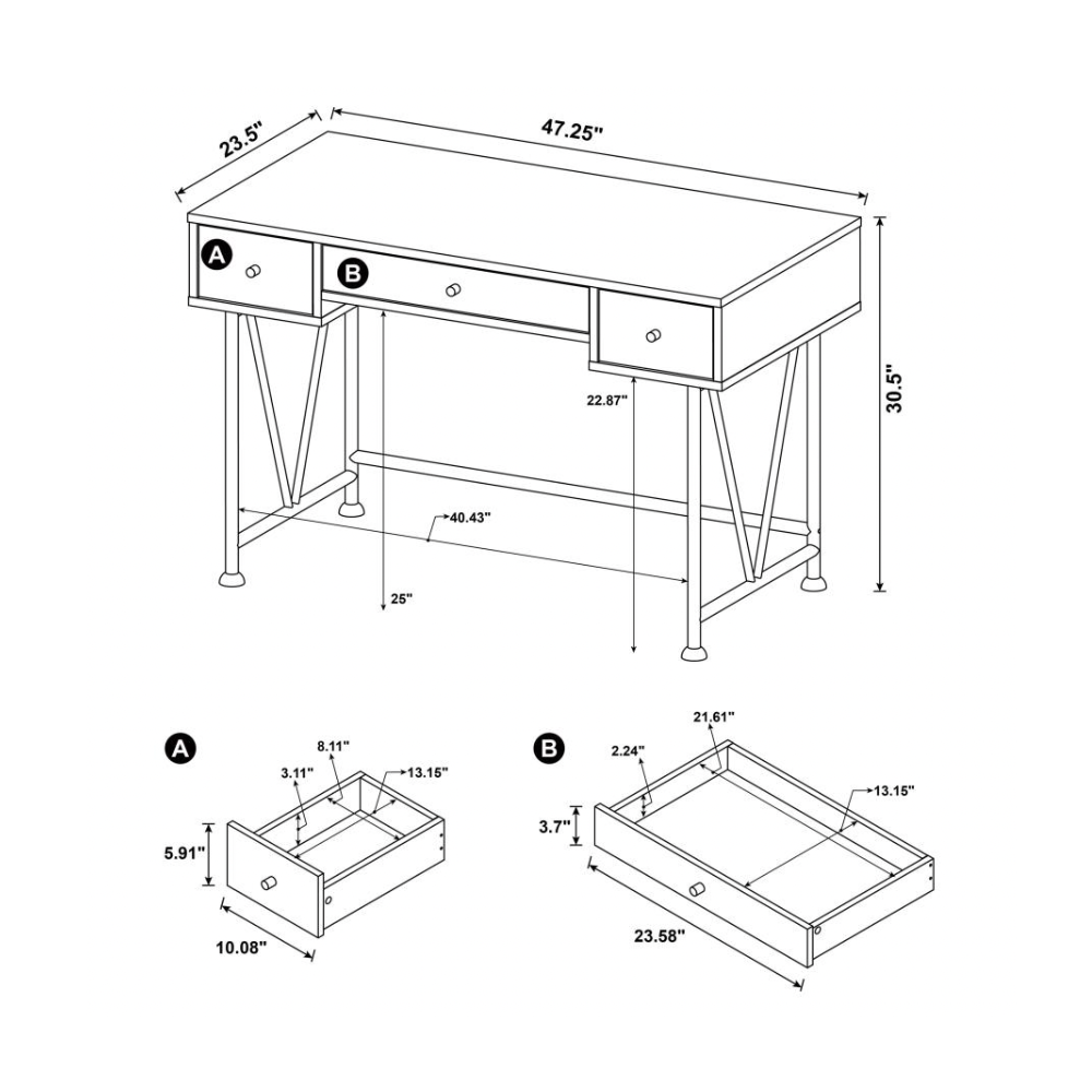 Bring earthy charm and industrial flair to your workspace with this compact writing desk. Perfect for a student’s room or a small home office, it showcases a beautiful antique nutmeg finish complemented by a sturdy black metal frame. Geometric design elements lend a contemporary edge, while three drawers with smooth Euro glides offer convenient storage. This eclectic desk combines style and function, making it a standout addition to any modern or industrial-inspired space.