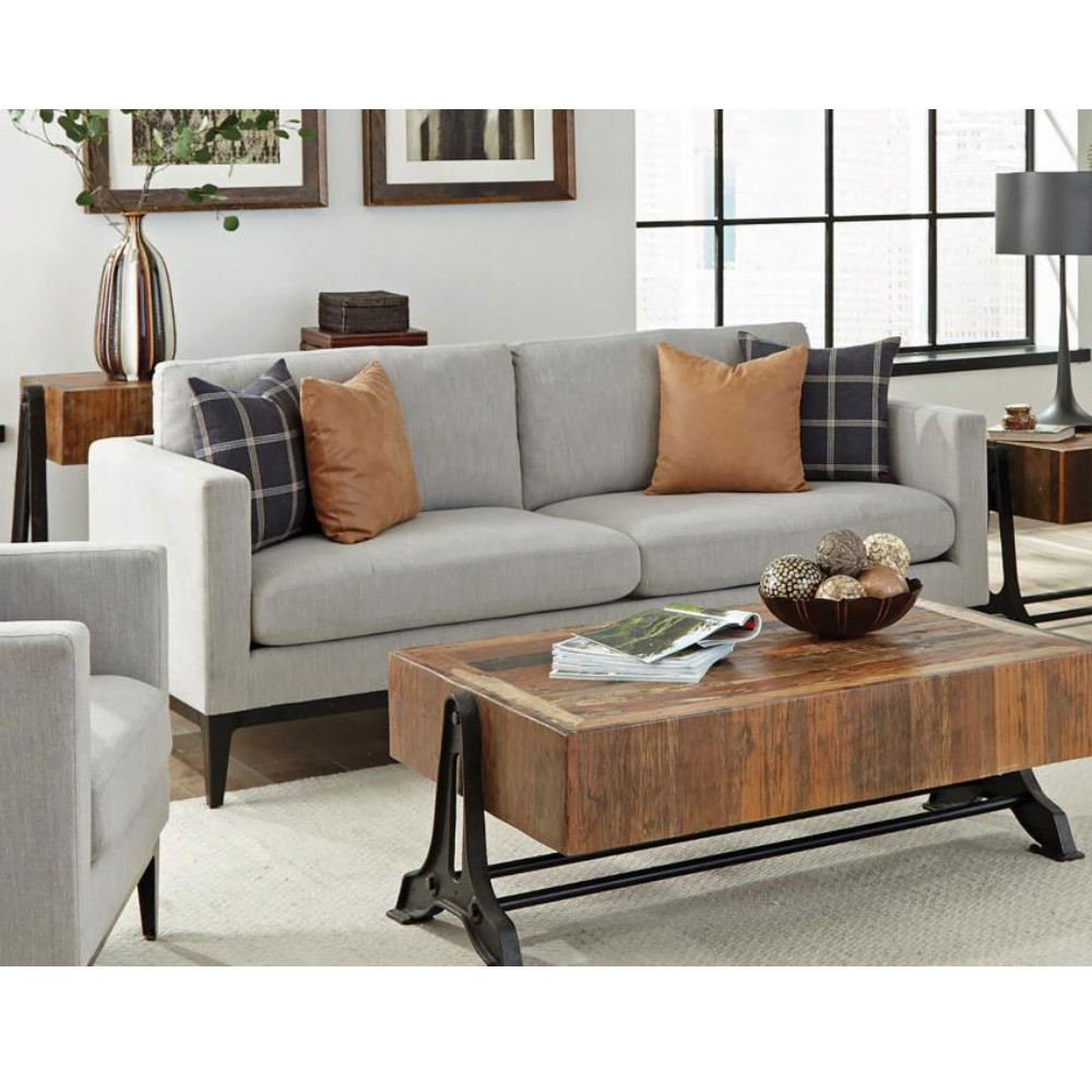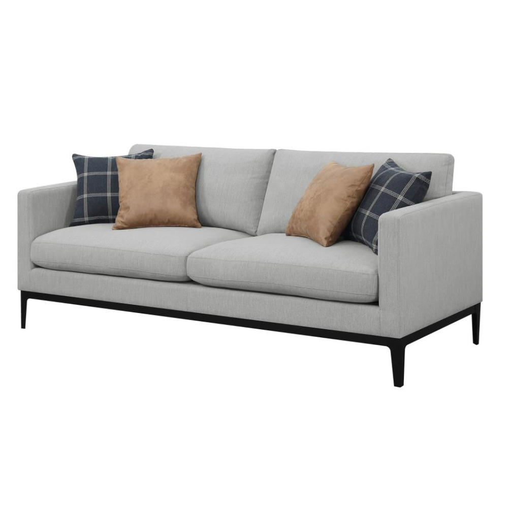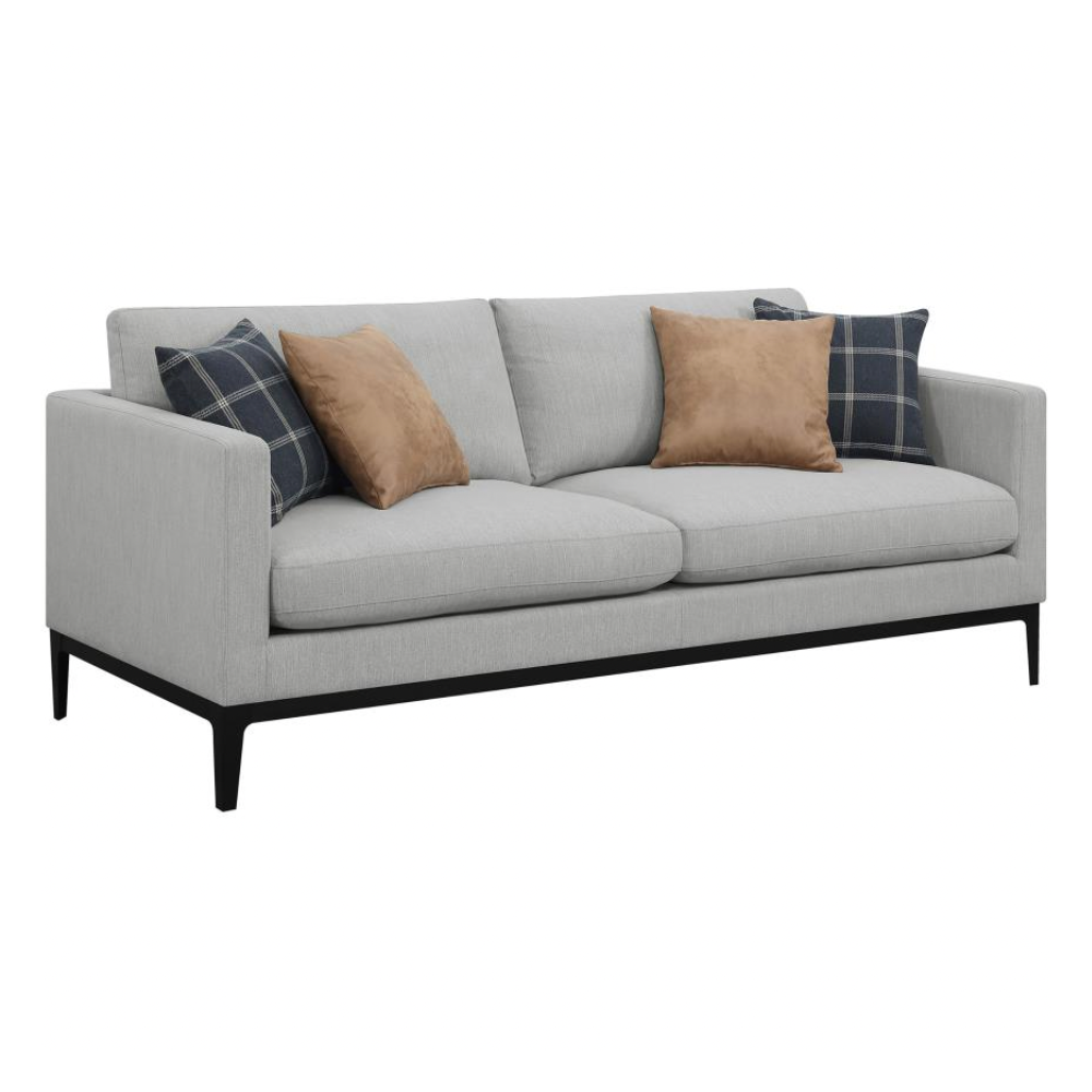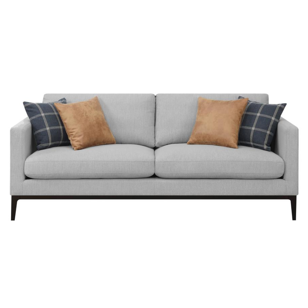 Lounge in style with this chic, comfortable sofa. With its understated, transitional design, it effortlessly complements the decor of any living room. Soft, grey upholstery highlights its simple silhouette, while two matching accent pillows add an inviting touch. The plush seat cushions elevate the comfort, making this sofa a perfect spot for relaxing with loved ones.