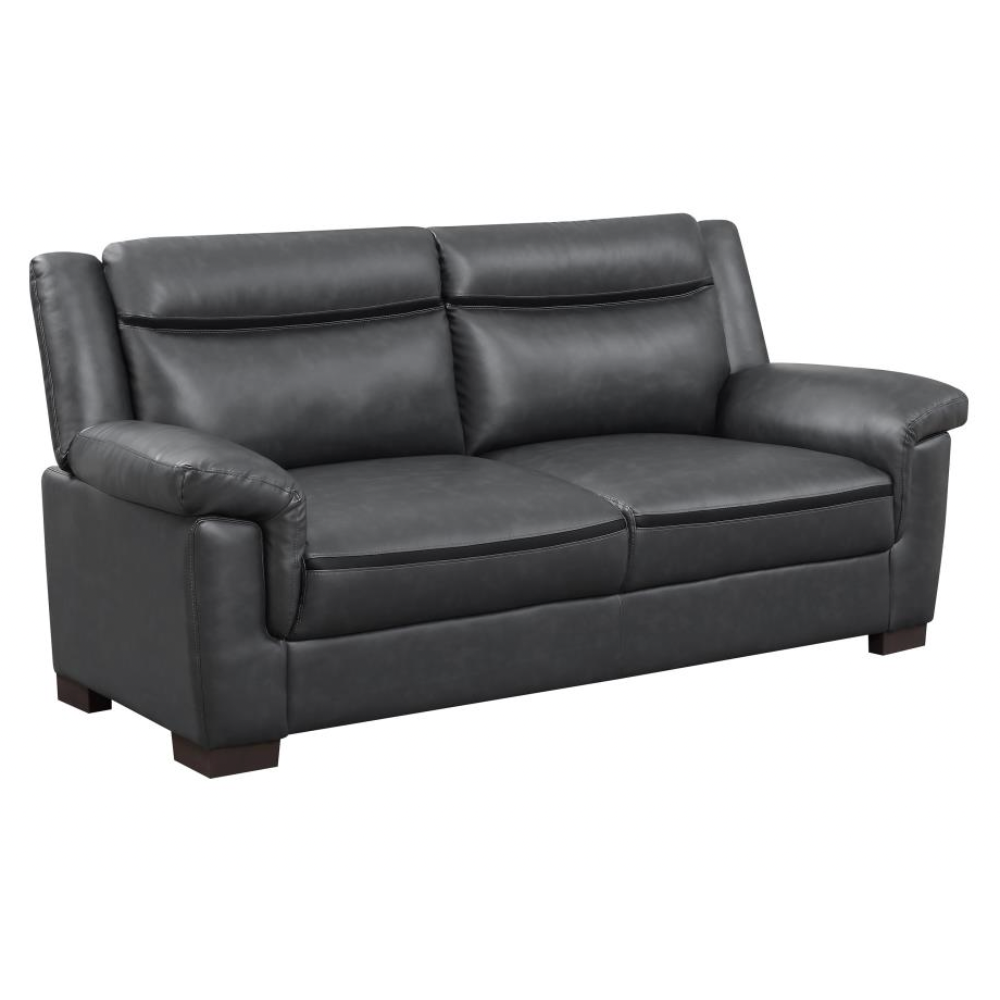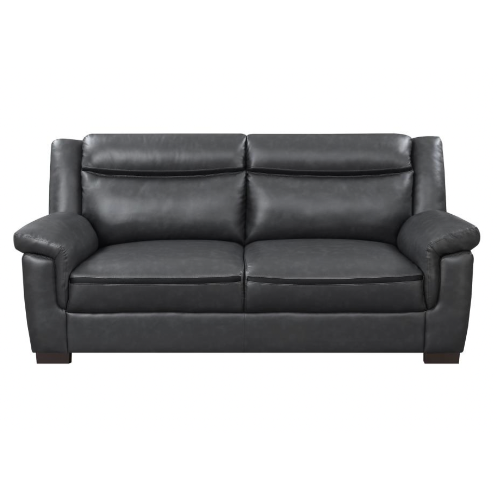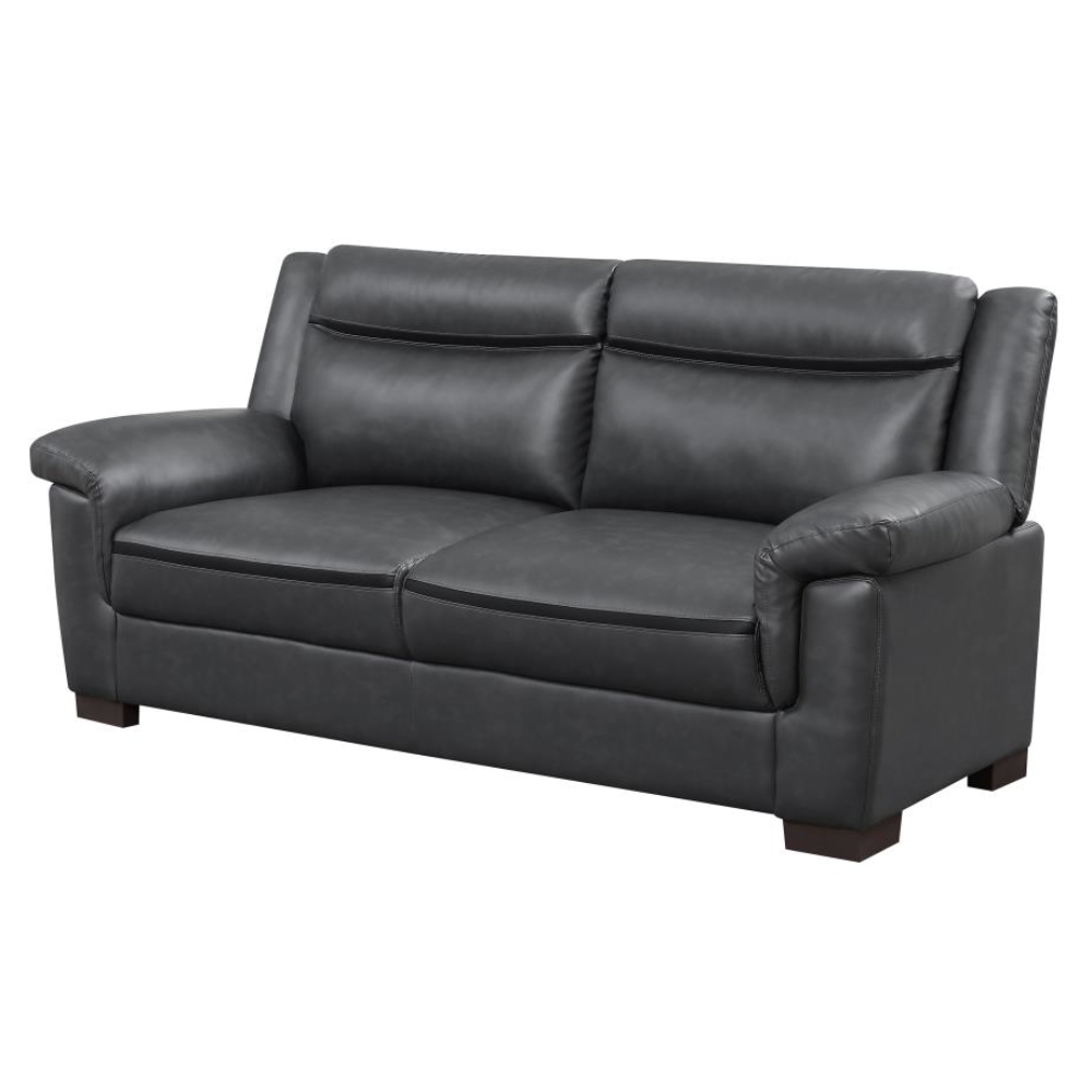 Upgrade your living room with the contemporary charm of this modern sofa. Wrapped in soft, leatherette upholstery, it delivers a sleek and sophisticated aesthetic while ensuring optimal comfort. Padded seats and a high pillow-top back offer support and relaxation, making it a cozy addition to any space. Detailed stitching enhances its refined style, and the compact design is perfect for small spaces. With multiple color options available, this sofa effortlessly complements a variety of décor styles.