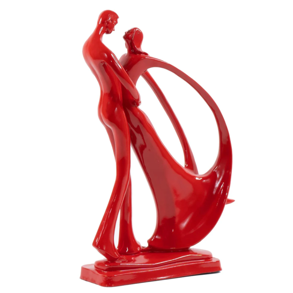 Celebrate the timeless essence of love with this Contemporary Couple's Sculpture. Showcasing a modern male figure tenderly holding the female figure by the waist in a graceful dance, this unique piece captures the beauty of romance. Crafted from high-quality polystone material and finished with a glossy sheen, the sculpture is available in striking red and classic white. Its sleek design makes it the perfect addition to any side or console table, adding a romantic and artistic touch to your home.