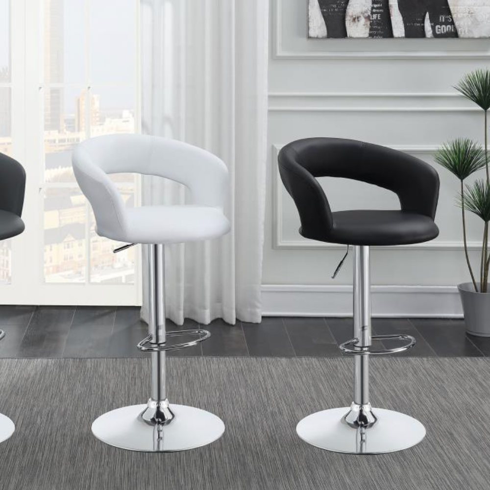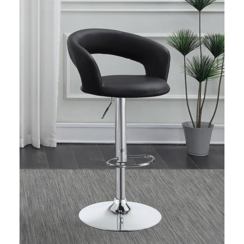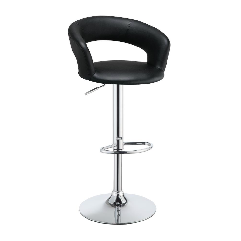 Sleek and sophisticated, this adjustable barstool is the epitome of modern elegance. With a design that blends comfort and style, it features a high-quality steel frame for stable support and a smooth leatherette seat that offers an appealing texture. The black faux leather upholstery adds a touch of sophistication, while the chrome base provides a polished, dazzling shine. Perfect for contemporary spaces, this barstool combines height adjustability with fashionable design, making it a versatile addition to any kitchen or bar area.