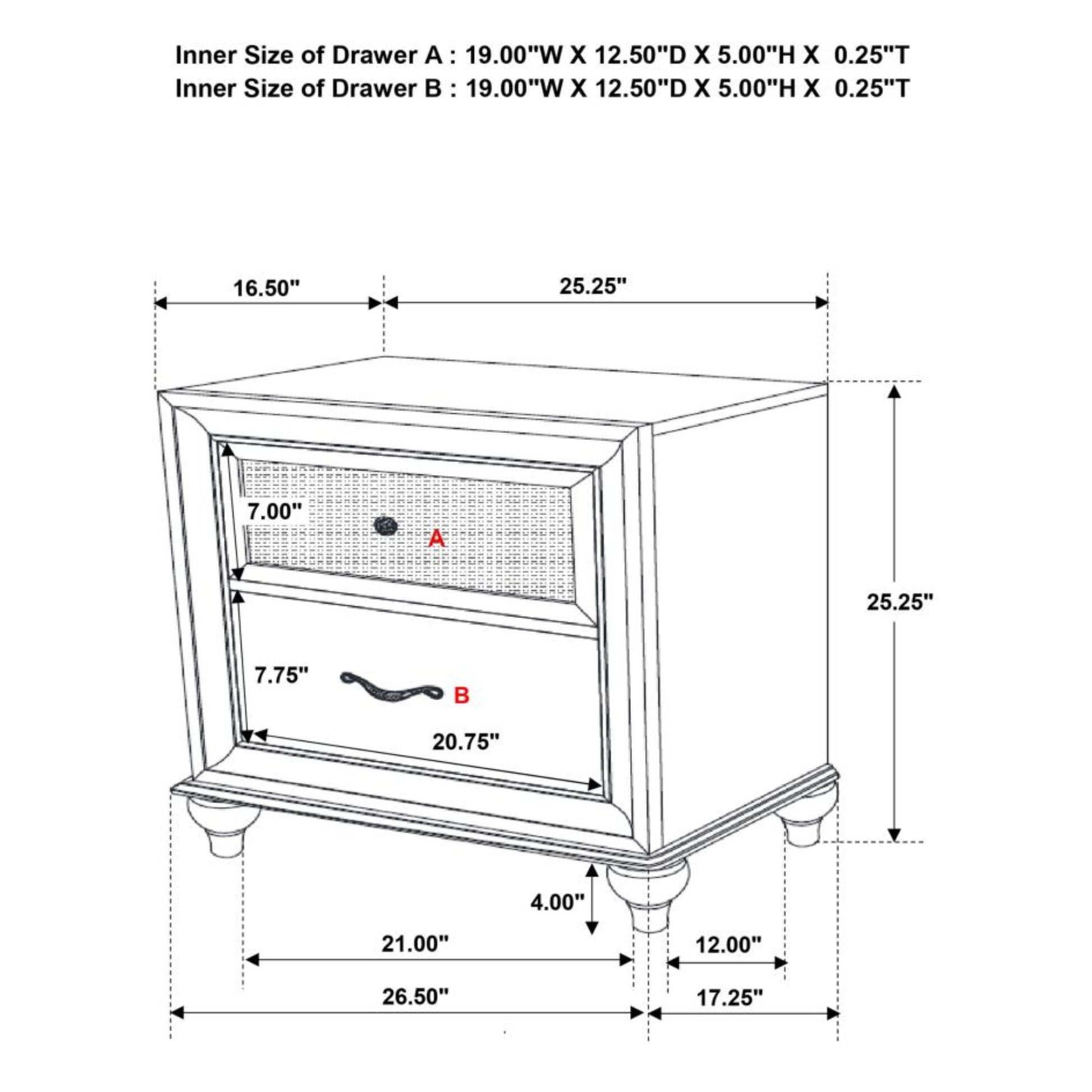 - Ample Storage: Equipped with two drawers, this nightstand offers ample storage space for keeping bedside essentials organized and within reach.