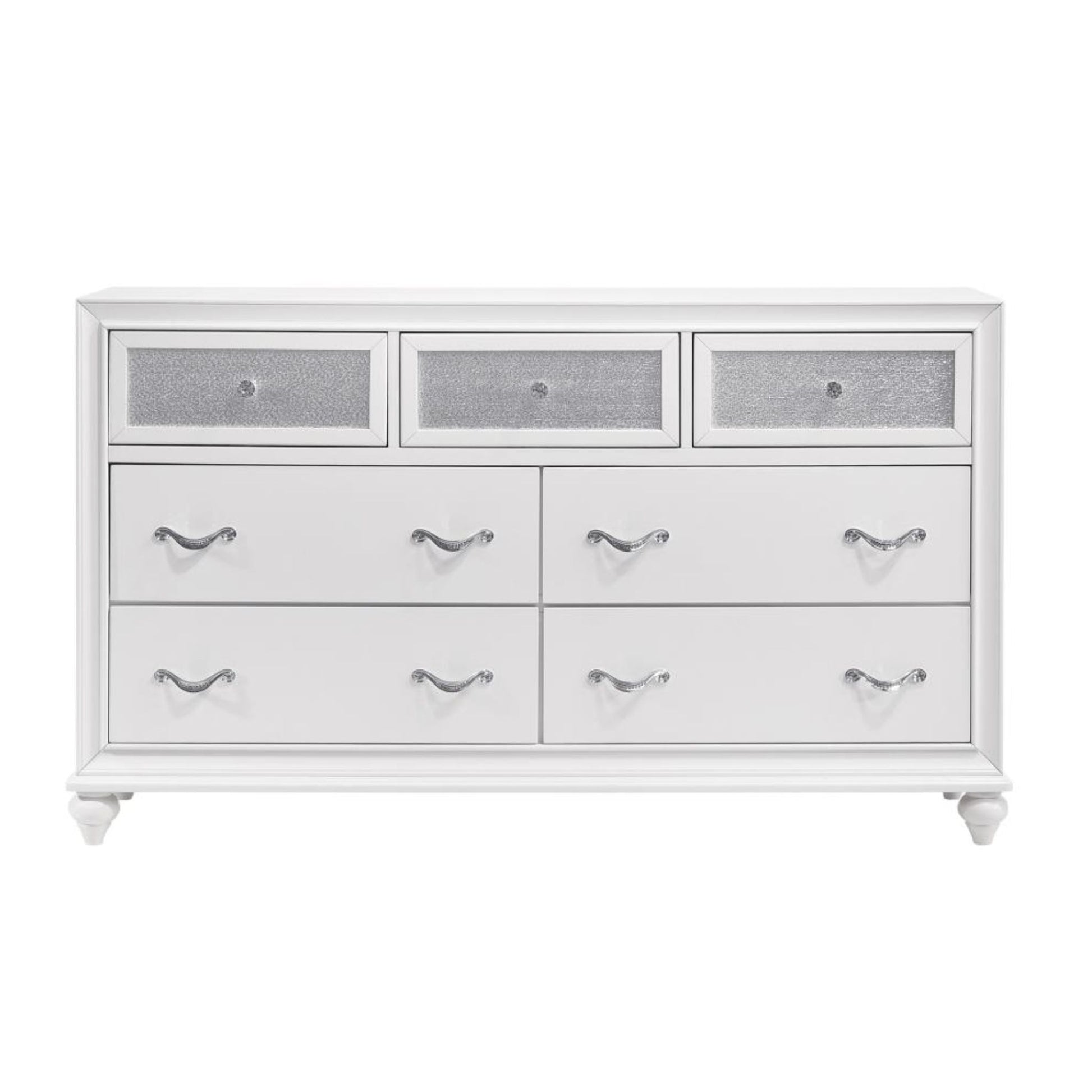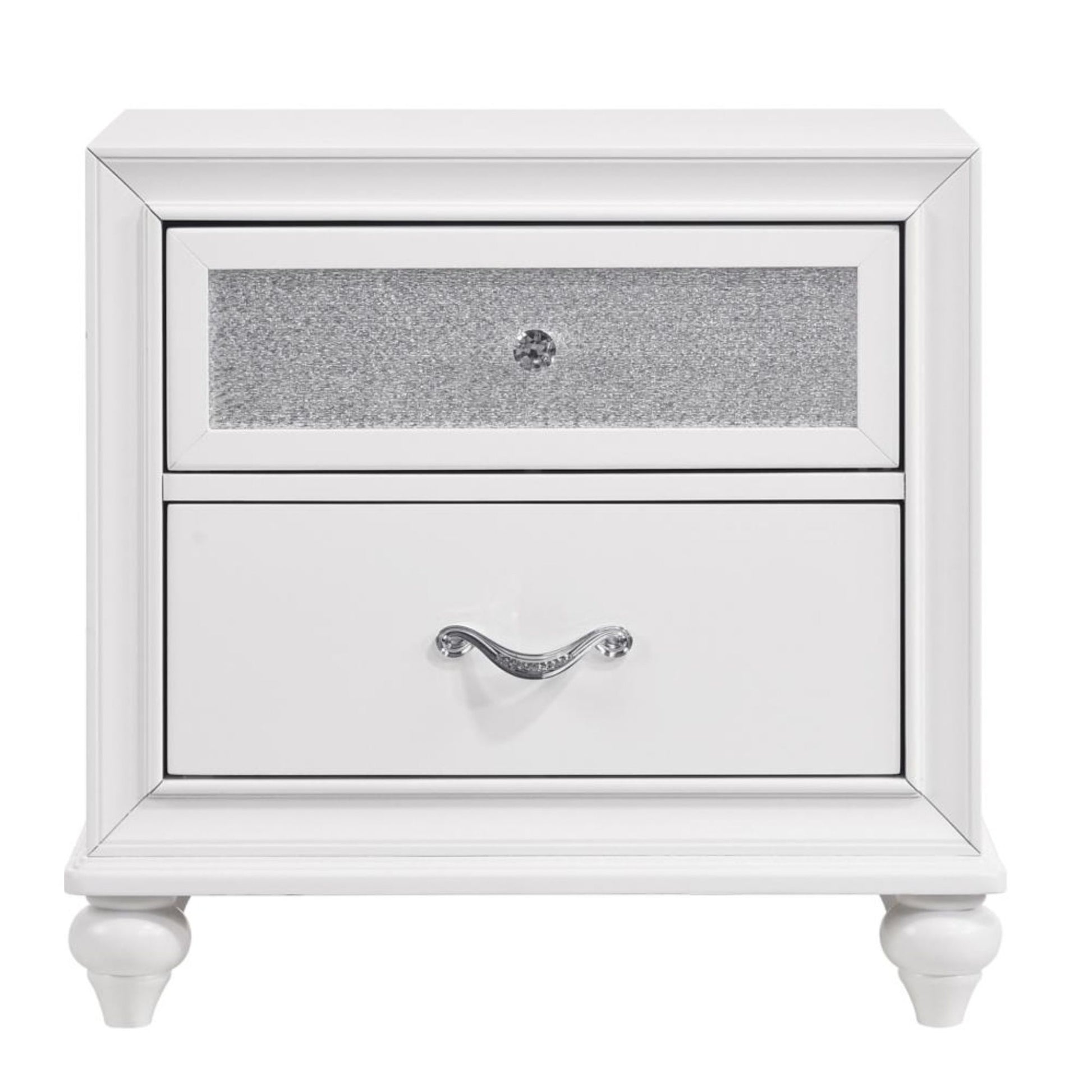 - Faceted Crystal Hardware: Both the nightstand and dresser boast metallic acrylic drawer fronts accentuated by faceted crystal hardware, adding a sparkling touch of elegance.
