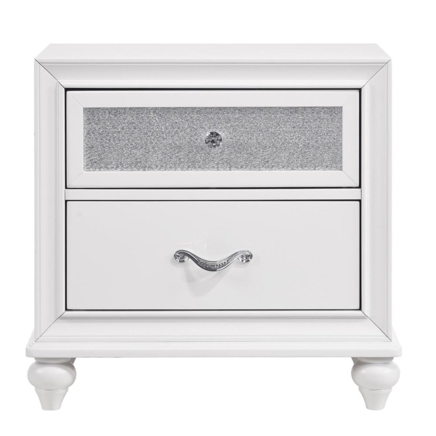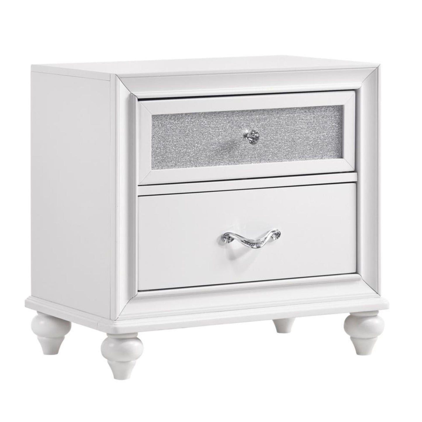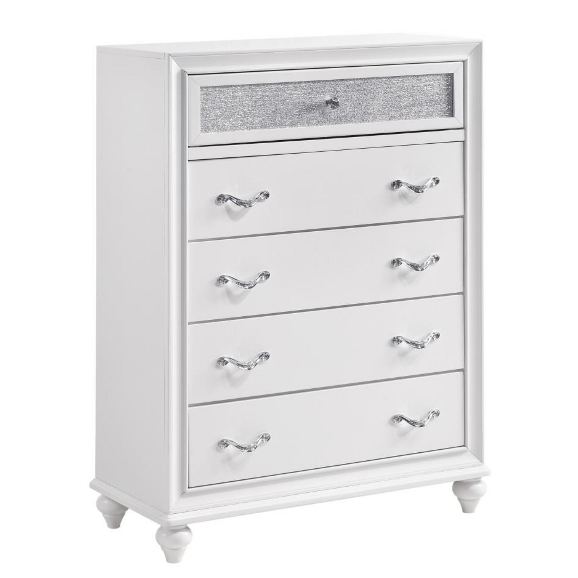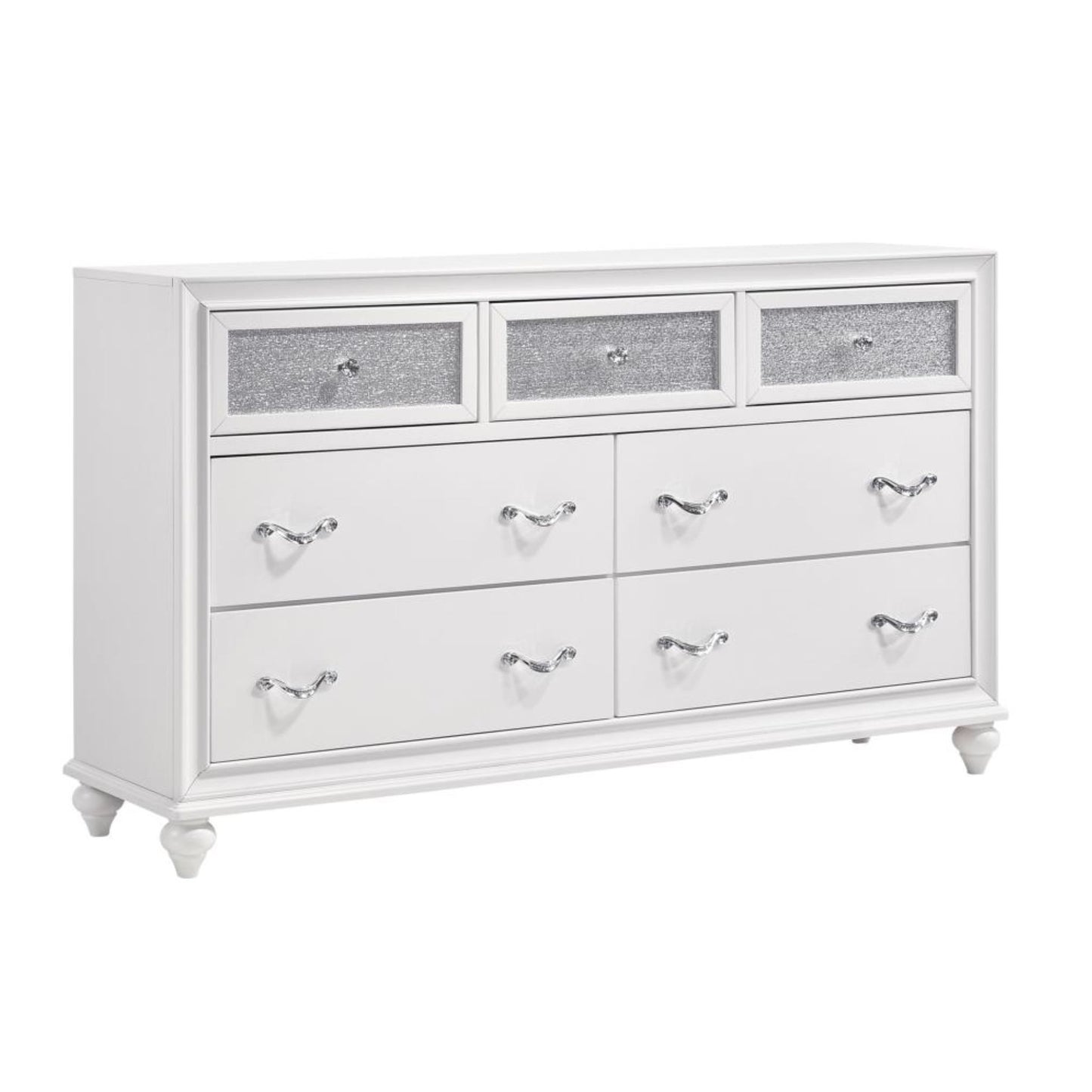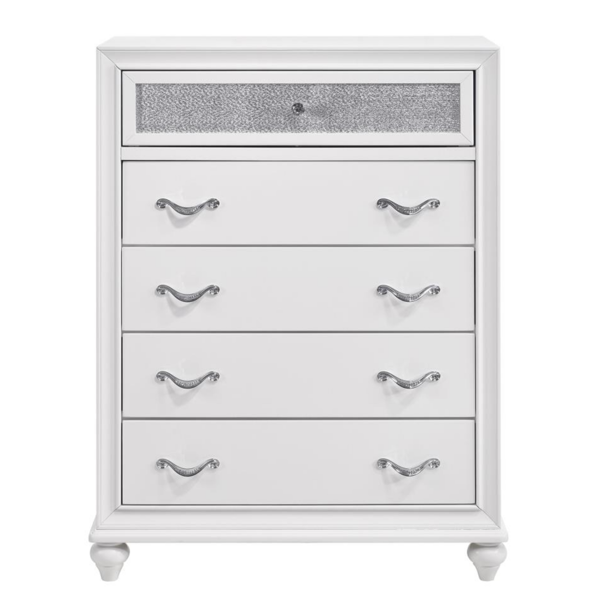 - Faceted Crystal Hardware: Each drawer is adorned with metallic acrylic fronts highlighted by faceted crystal hardware, adding a touch of sparkle and luxury to the set.