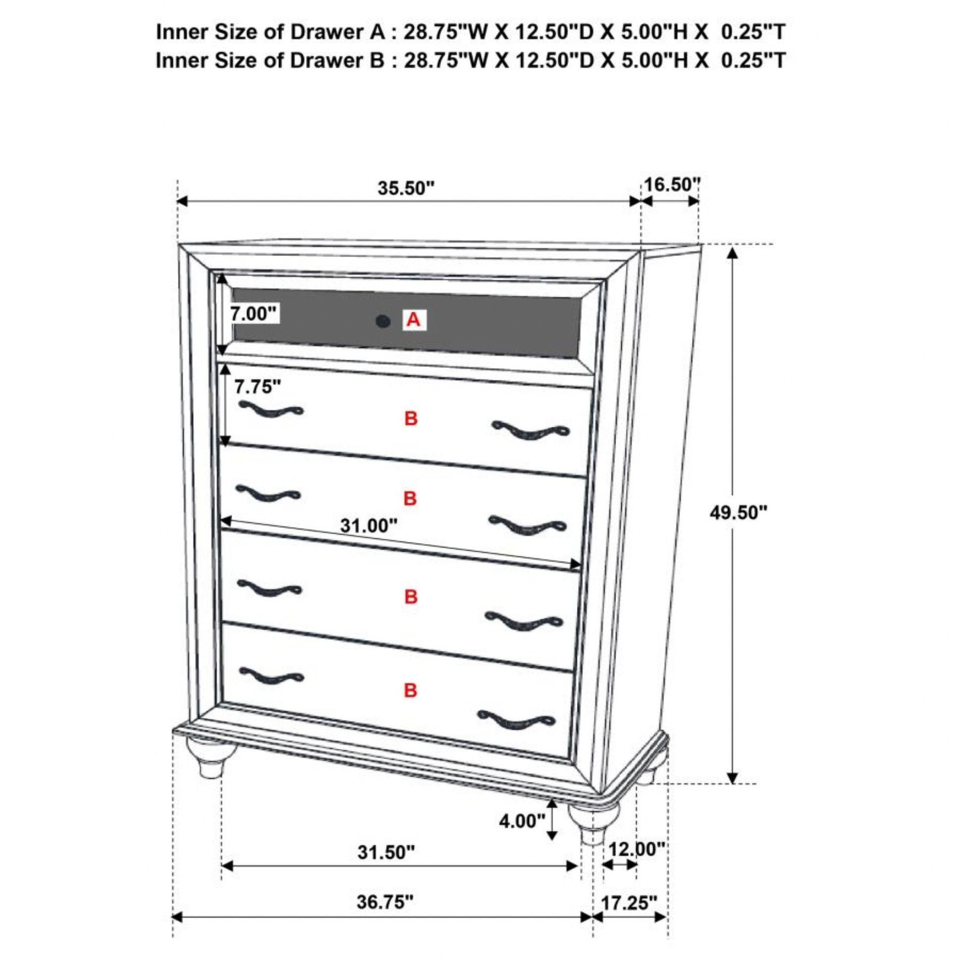 - Chest Size: W35.50" x D16.50" x H49.50"