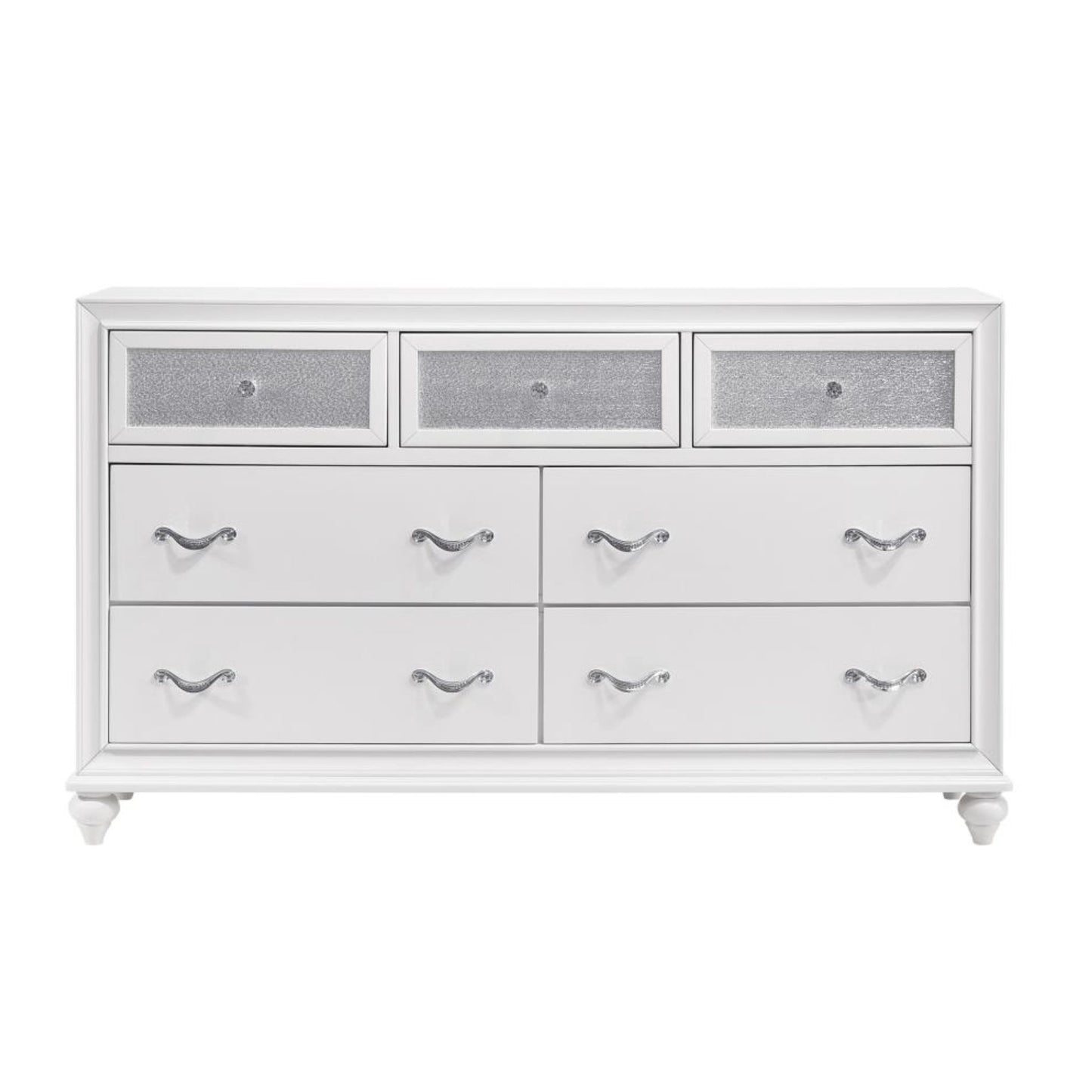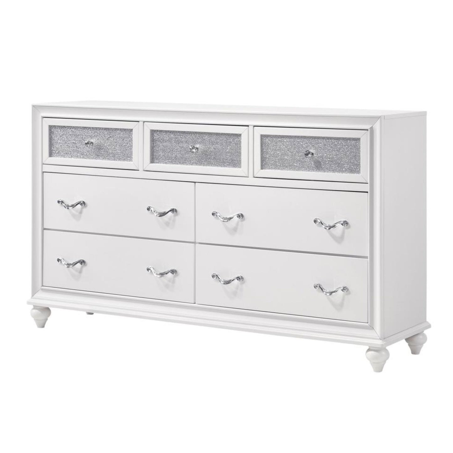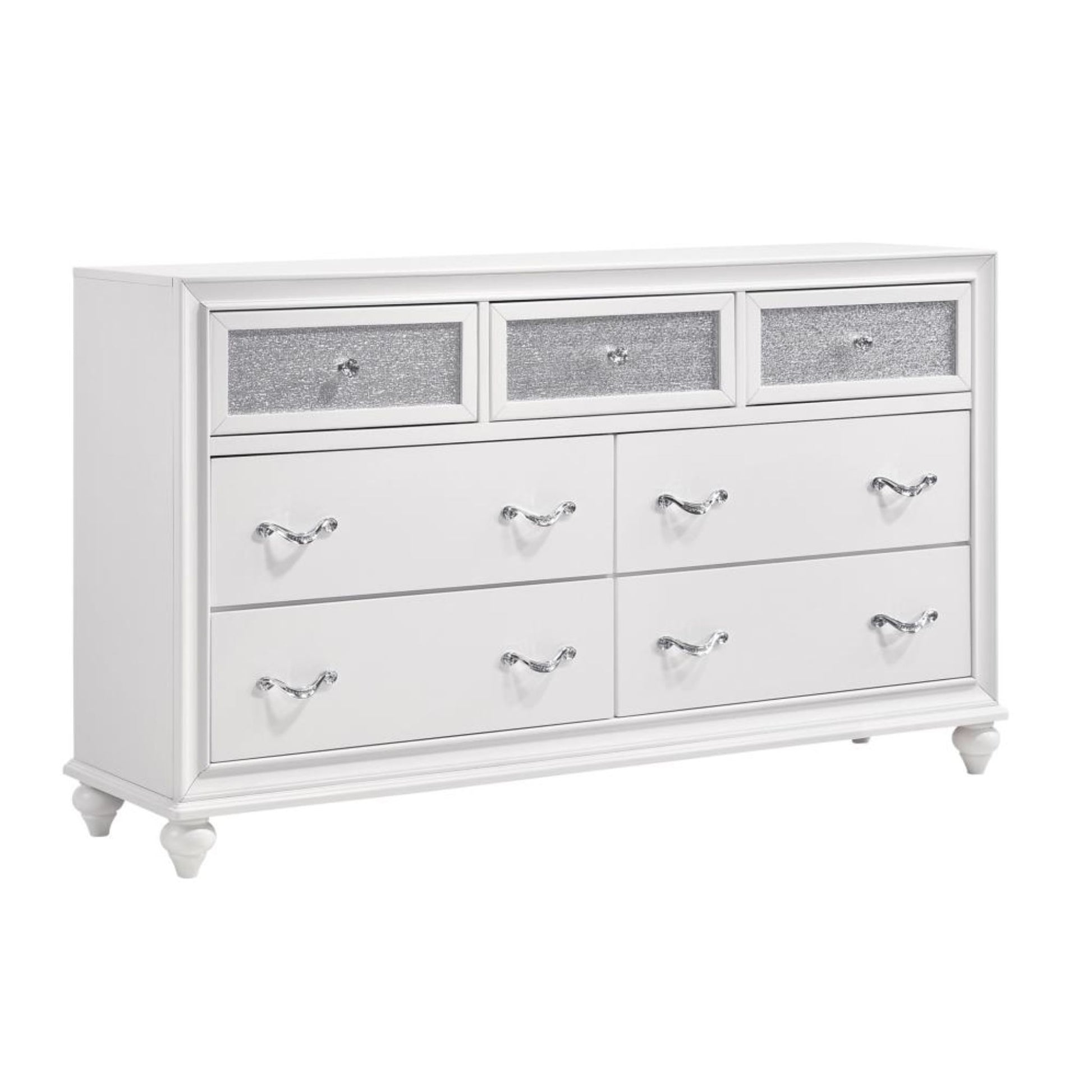 - Faceted Crystal Hardware: Elevate the elegance of your bedroom decor with the dresser's faceted crystal hardware, which adds a luxurious touch to the piece.