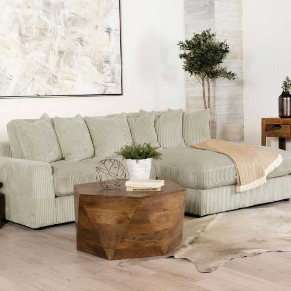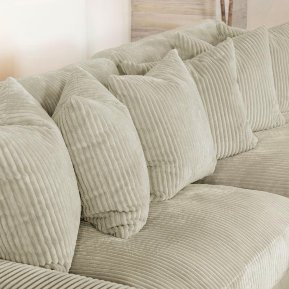 - Soft Corduroy Fabric: Upholstered in vintage-like wide corduroy fabric available in fog or sand tones.