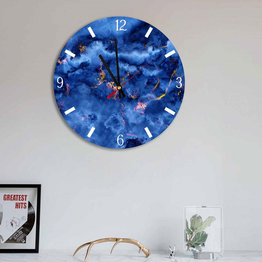 - Blue Abstract Clouds Design: The clock features a captivating and stylish blue abstract clouds pattern, adding a touch of artistic flair to your wall.