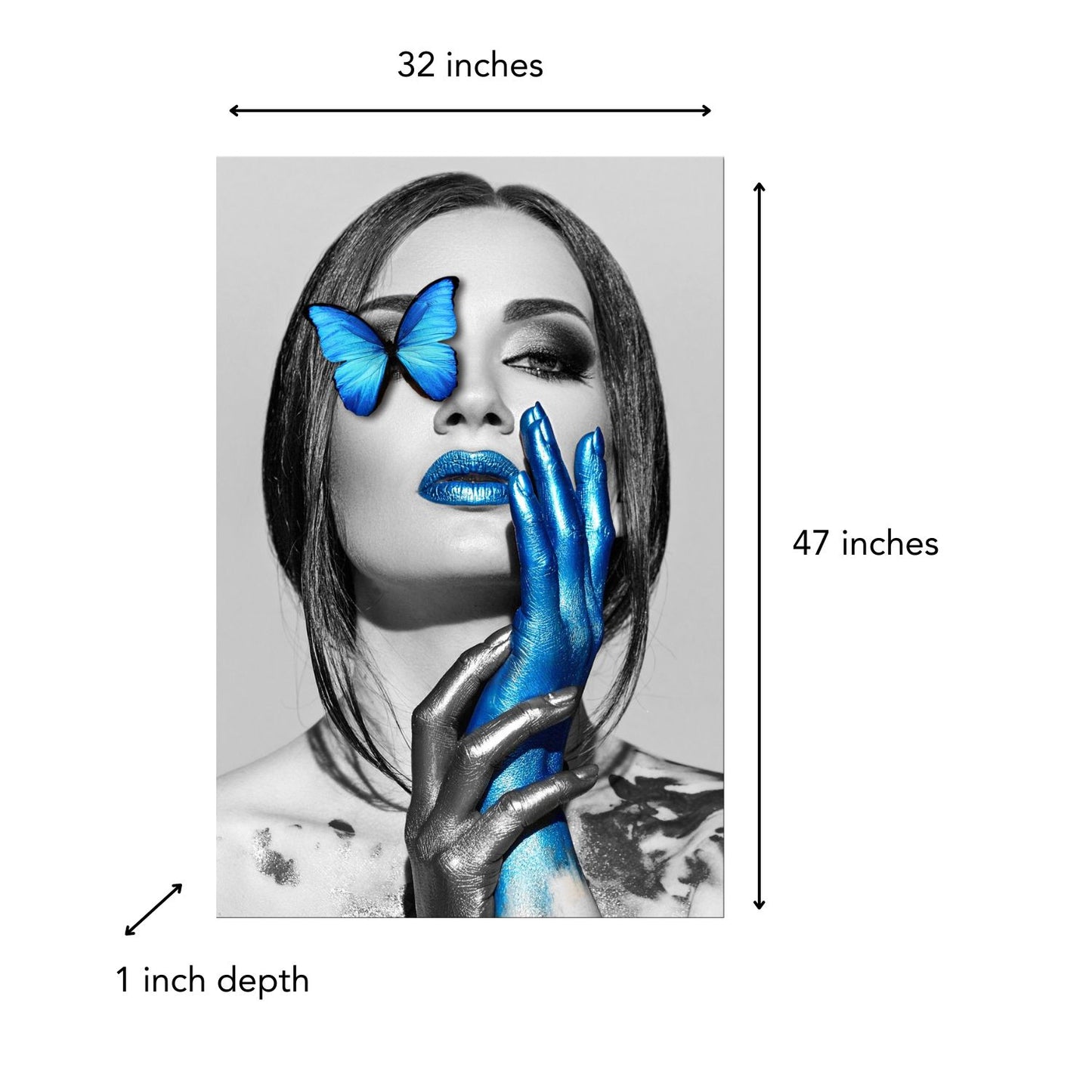 Introducing our captivating Wall Art - a Blue Woman Acrylic Print that seamlessly blends artistry and modern design in W32 x D1 x H47" dimension. With its acrylic beveled edge and convenient back frame for easy hanging, this piece is not just decor; it's a striking masterpiece that effortlessly enhances your living space.