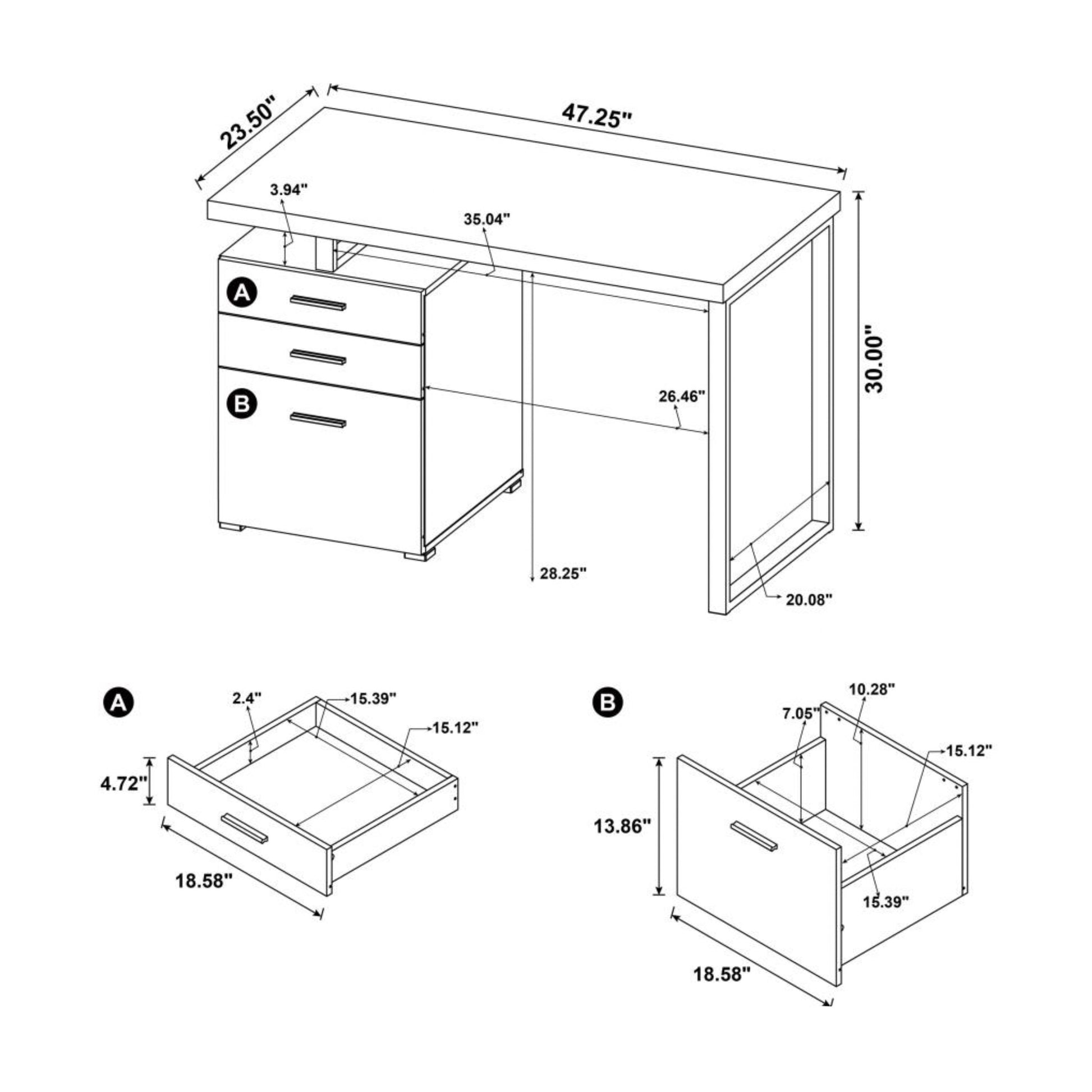 Perfect for those who prioritize organization, this desk features a large work surface supported by an elegant metal frame, blending style with functionality. With three drawers, including a convenient file cabinet, this desk offers ample storage to keep your workspace tidy and clutter-free. Available in three gorgeous finishes, it effortlessly enhances the decor of any office setting.