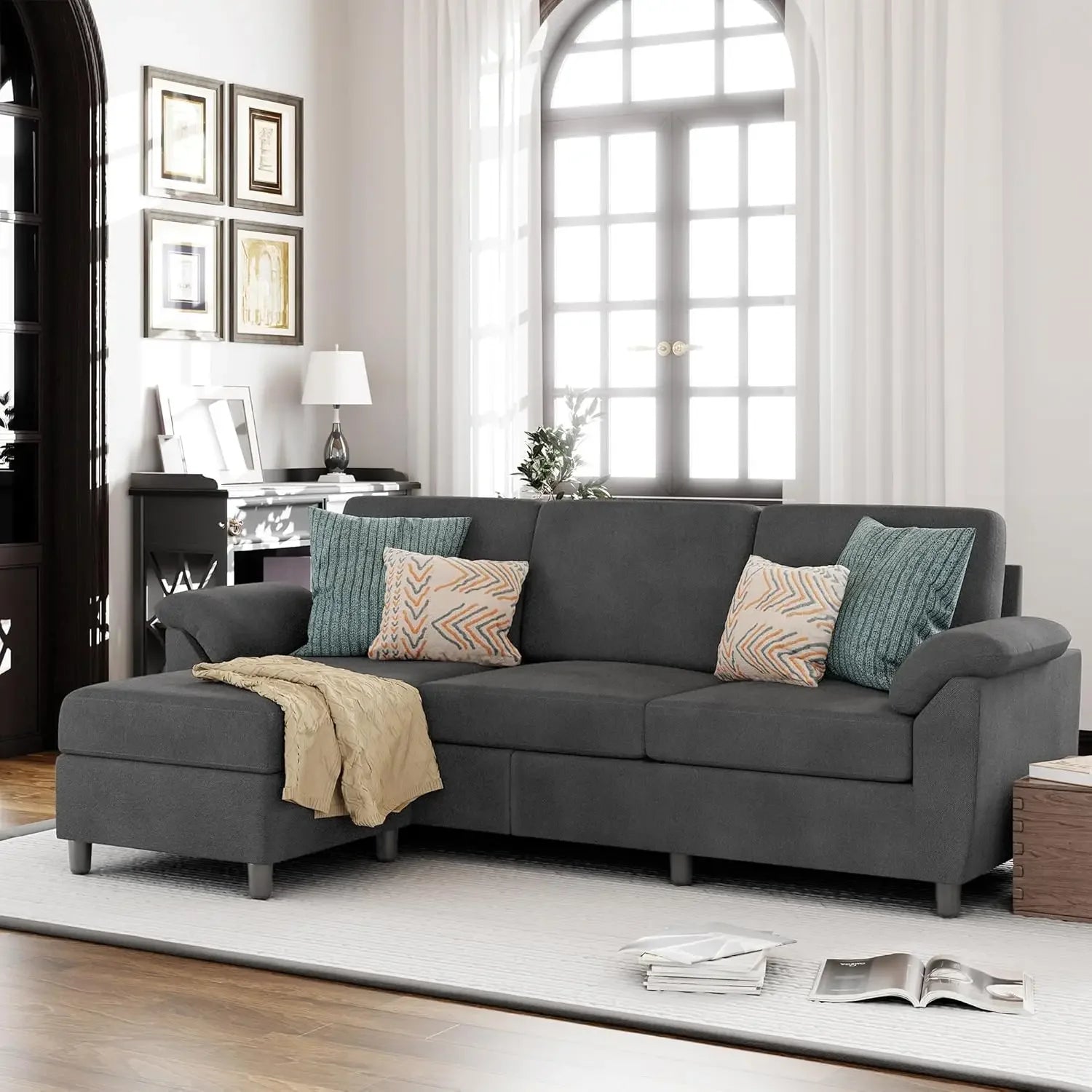 BRIZO 3 Seat L Shaped Sectional Sofa with Removable Pillows Black