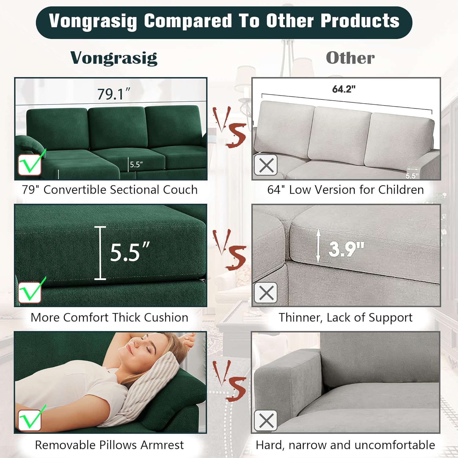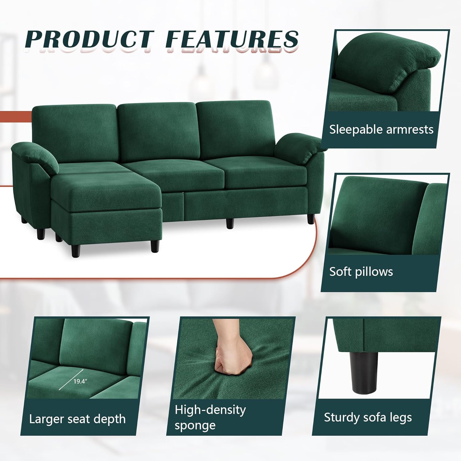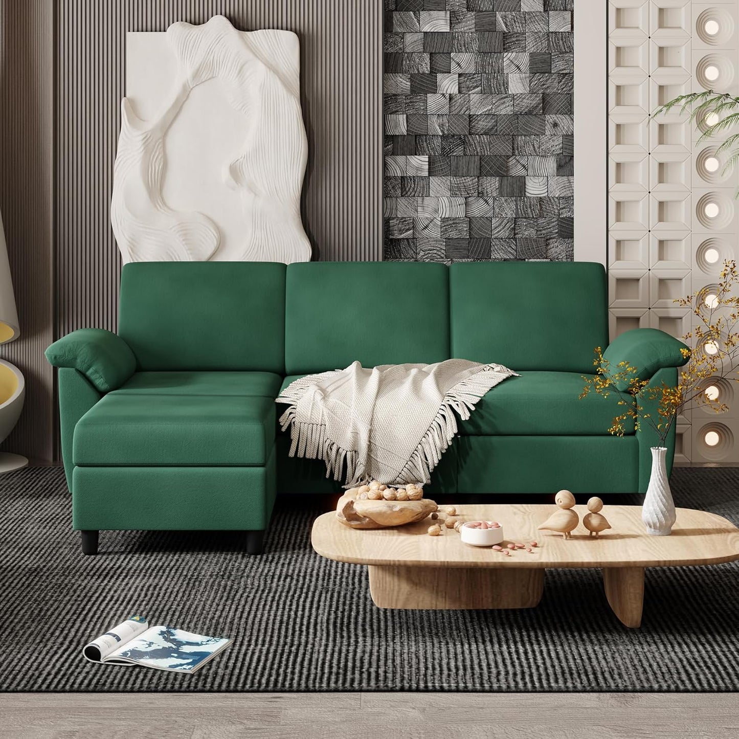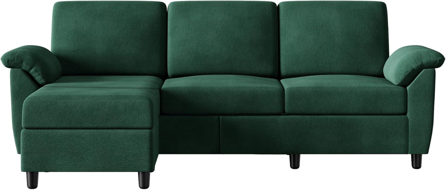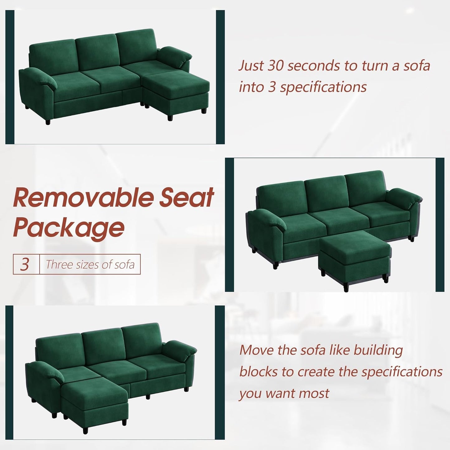 BRIZO 3 Seat L Shaped Sectional Sofa with Removable Pillows Green