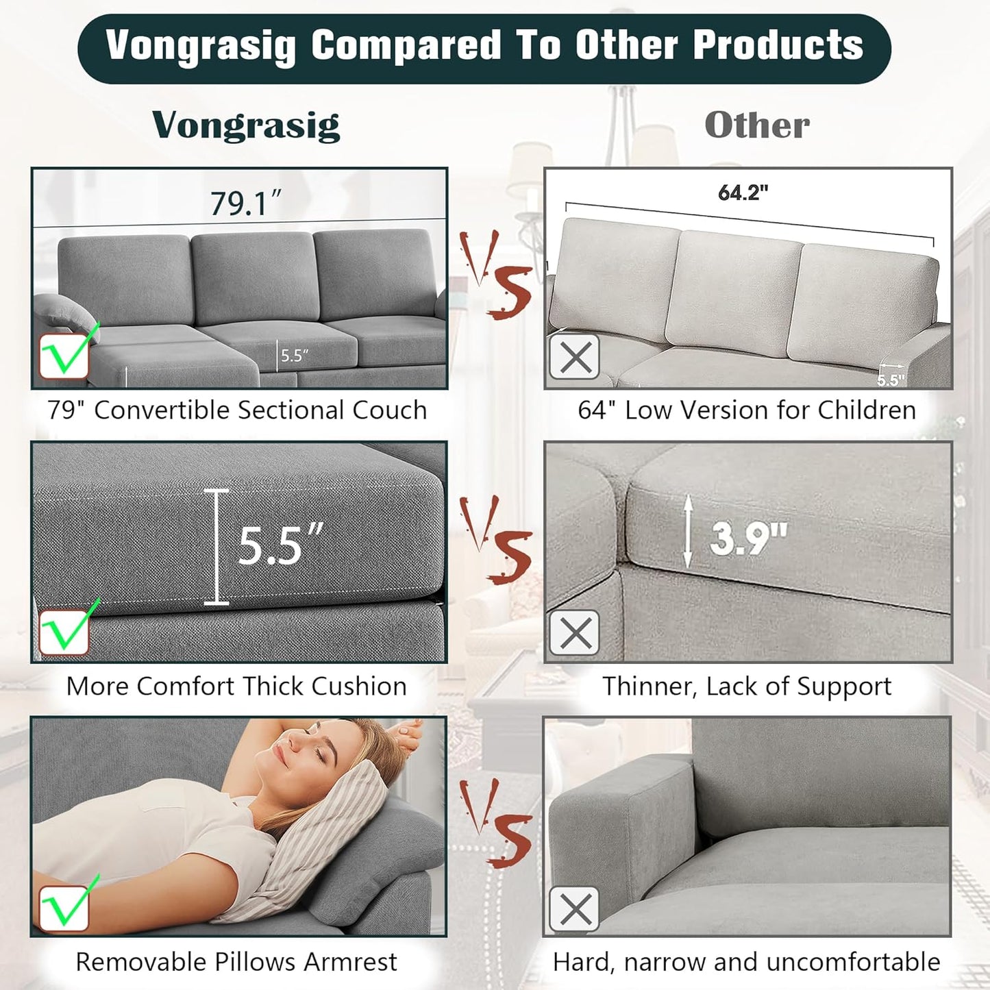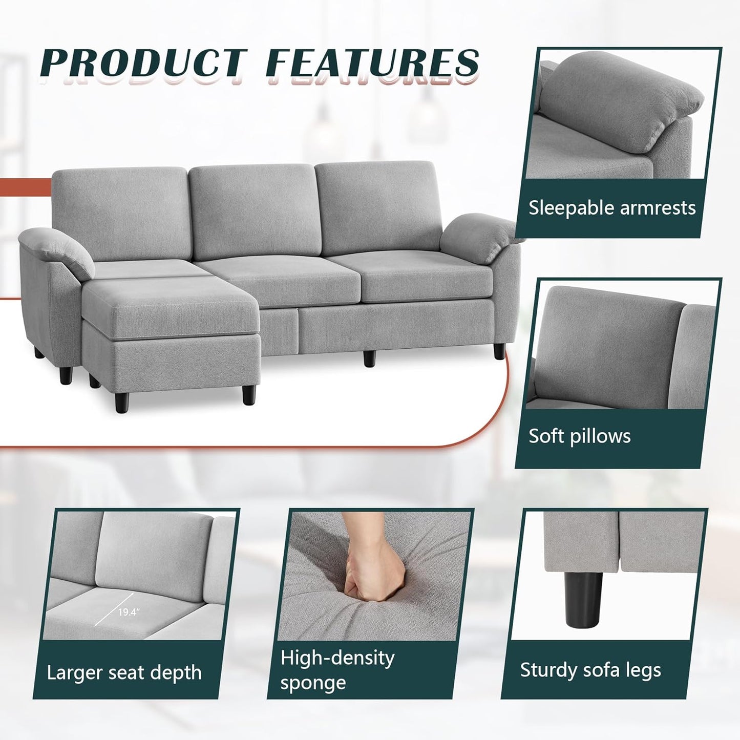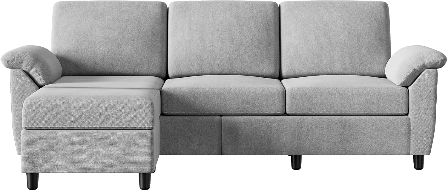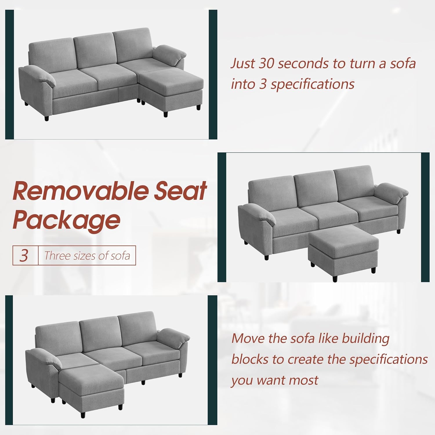 BRIZO 3 Seat L Shaped Sectional Sofa with Removable Pillows Light Grey