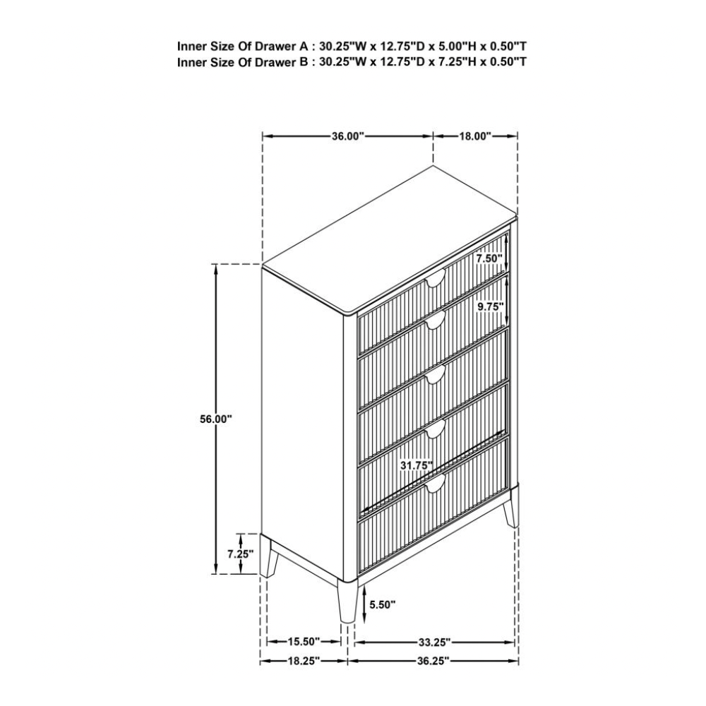 | Dresser | 66.25" | 18.00" | 38.25" | 218.25 lbs |