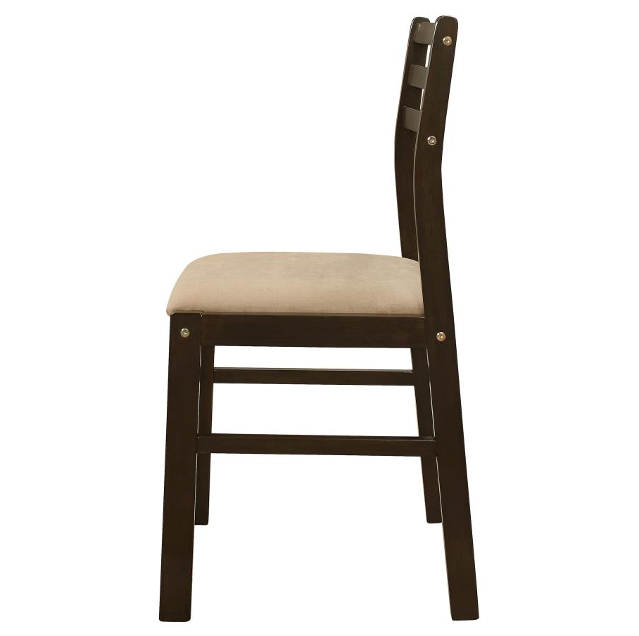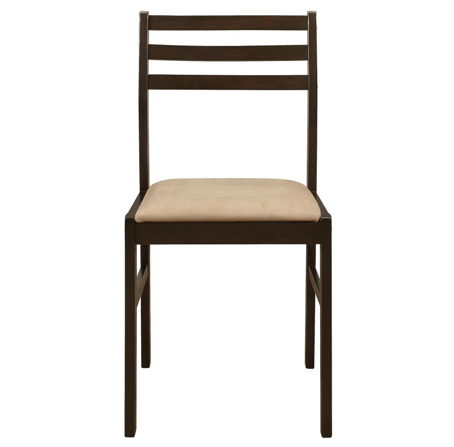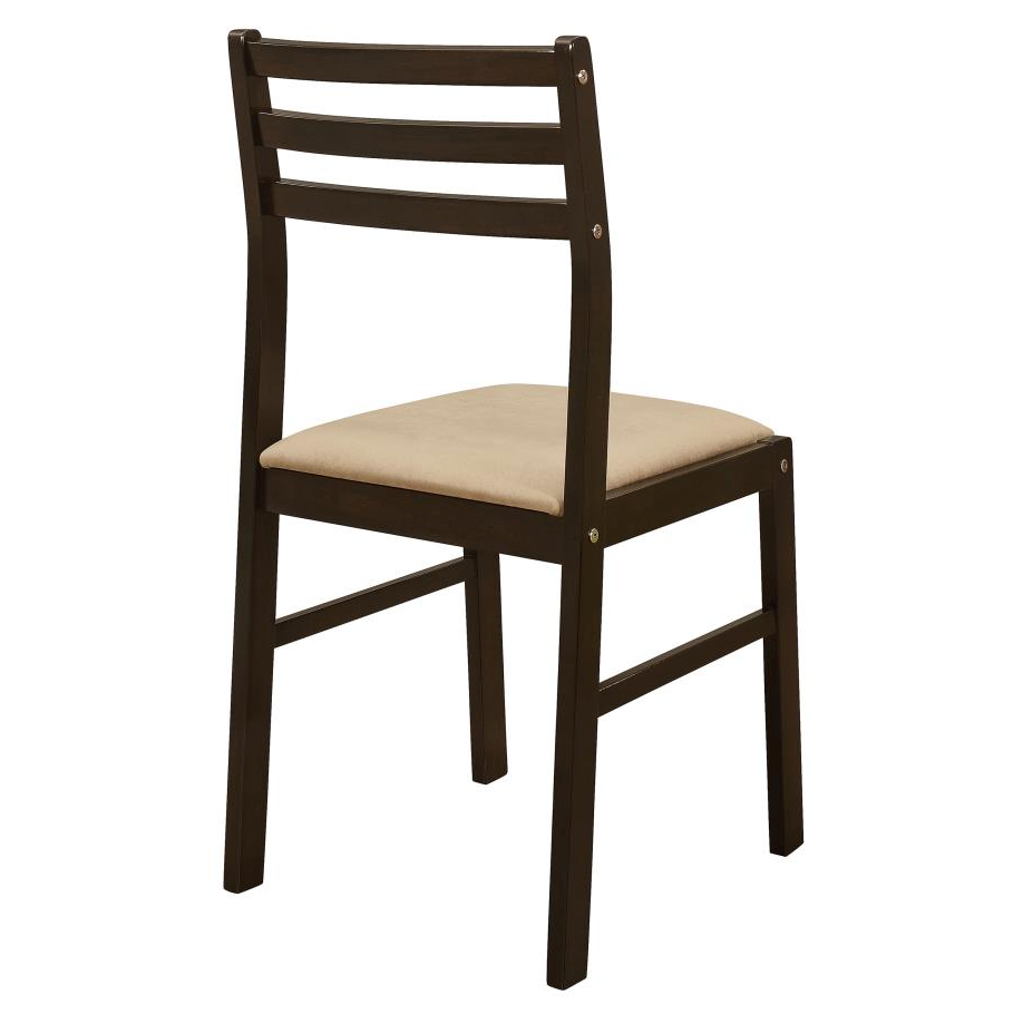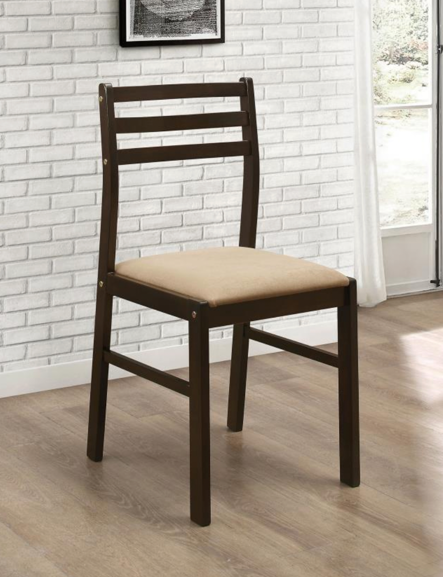 - Deep Cappuccino Finish: Adorned with a deep, rich cappuccino finish, the table and chairs exude elegance and sophistication, while sleek, graceful lines add a touch of timeless charm to the overall aesthetic.