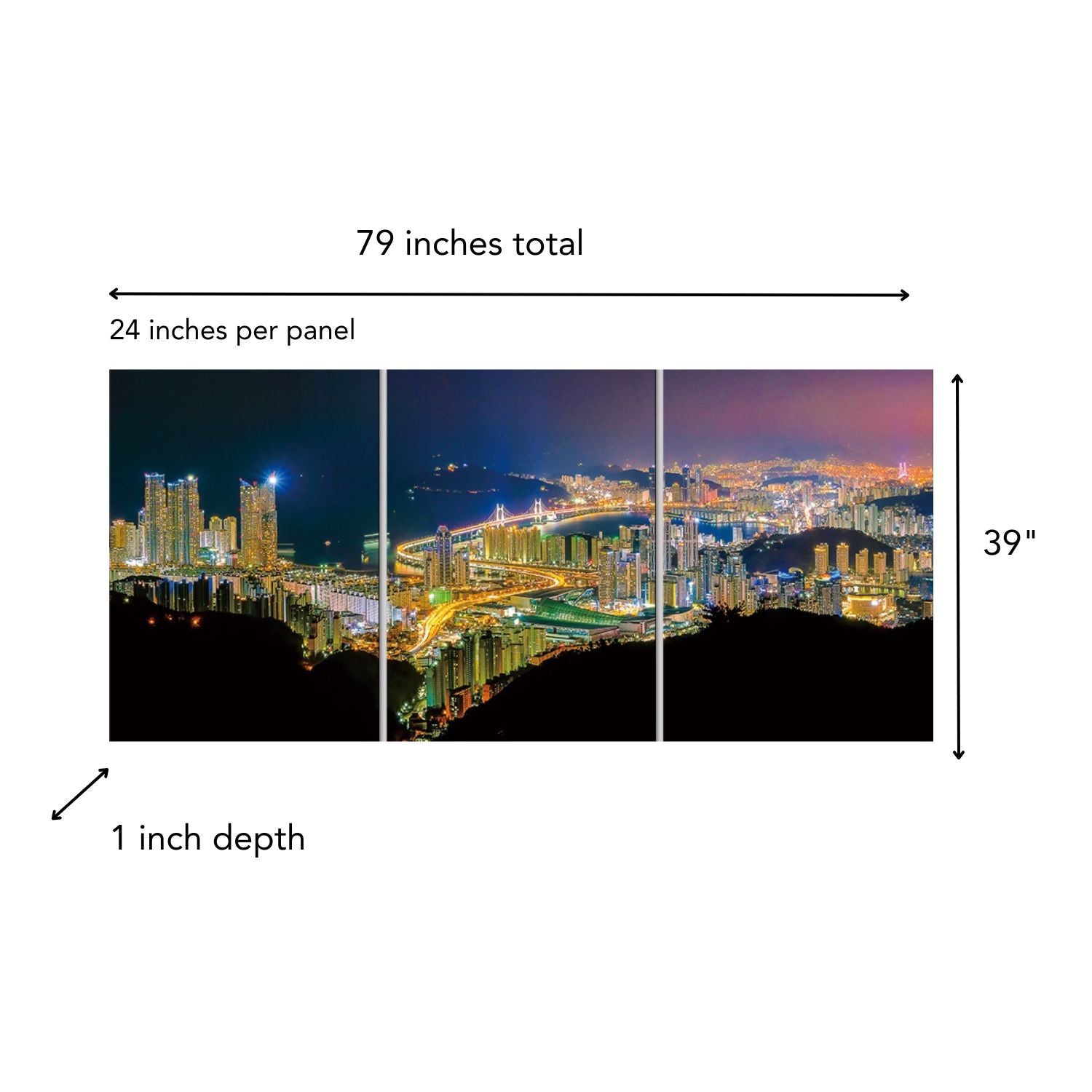 - Large Panels: Each of the three panels measures an impressive 26x39", offering substantial coverage and a commanding presence on your wall. The generous size ensures that your Busan Skyline at Night Acrylic Picture captures attention and infuses your space with the vibrant beauty of this remarkable city.
