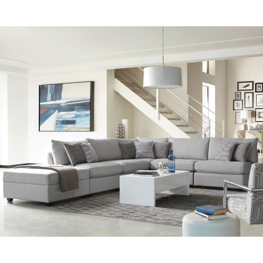 - Versatile Modular Design: Adds flexibility to the contemporary sectional sofa with soft gray upholstery.