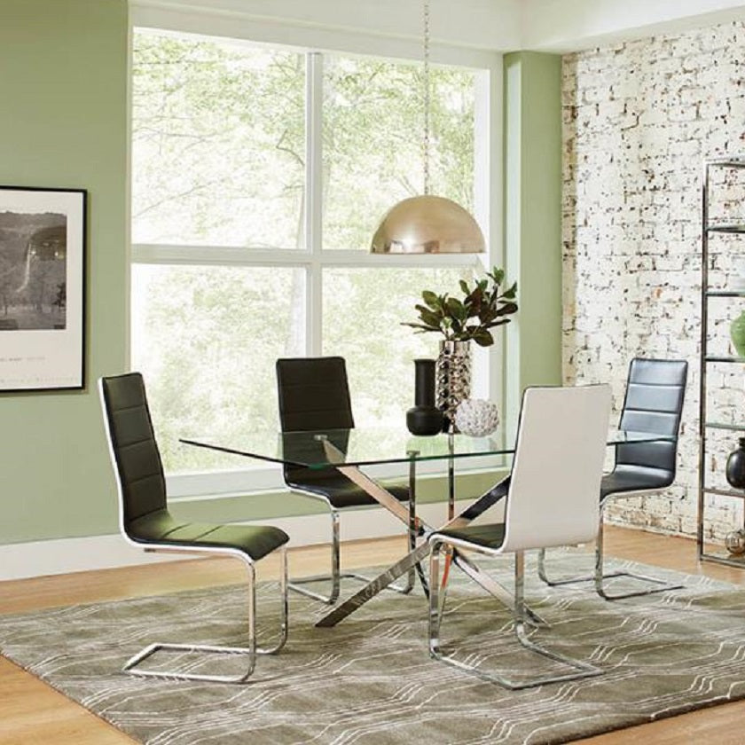 - Chic Chair Design: Enhance your dining experience with chairs featuring a white glossy back for a touch of elegance, paired with black leatherette upholstery for a blend of comfort and style.