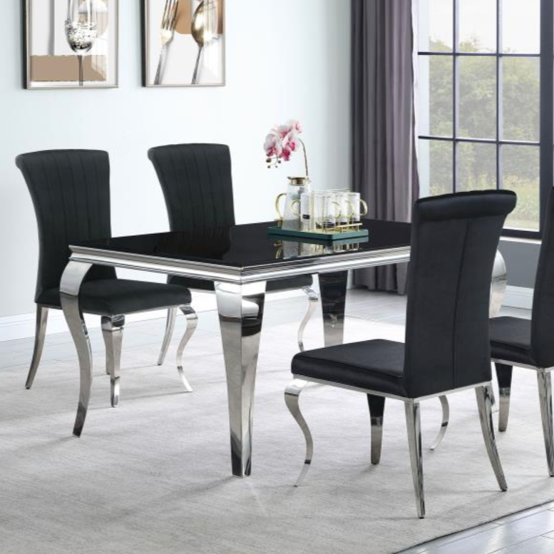 - Thick Black Tempered Glass Top: Elevate your dining experience with the rectangular table's thick black tempered glass top, adding a touch of sophistication and durability to every meal.