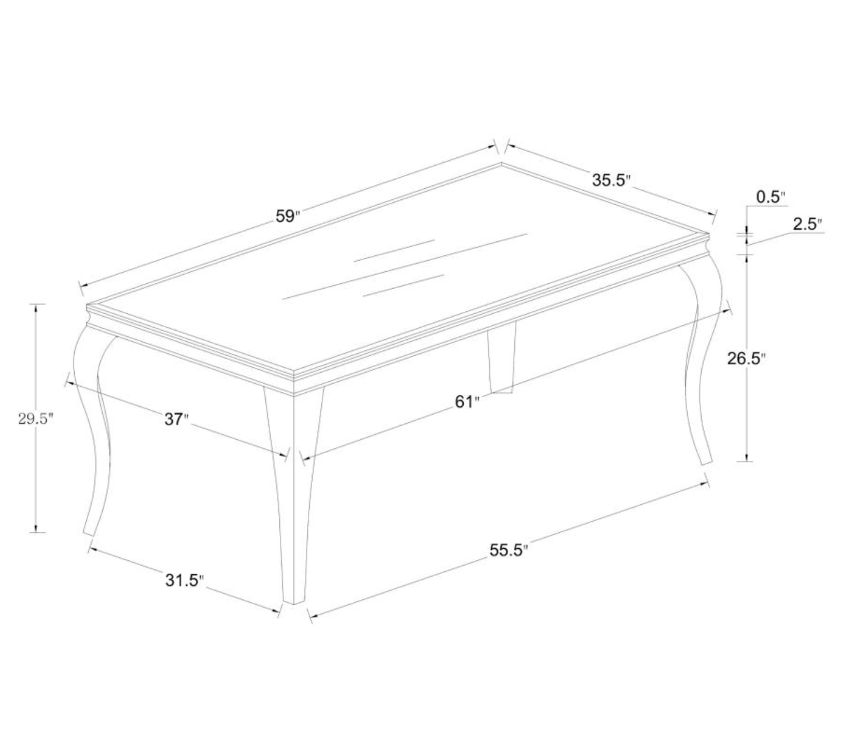 - Dining Table Size: W61.00" x D37.00" x H29.50"