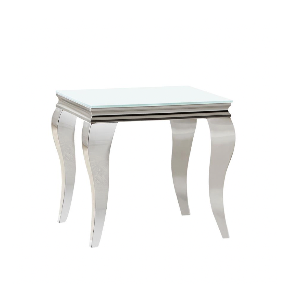 Add a touch of modern glam to your space with this elegant end table, featuring a tempered beveled glass top and polished stainless steel cabriole legs. The reflective finish and graceful curves channel timeless sophistication, making it a stunning accent for refined, contemporary interiors. Easy-care surfaces keep its luxe look effortless.