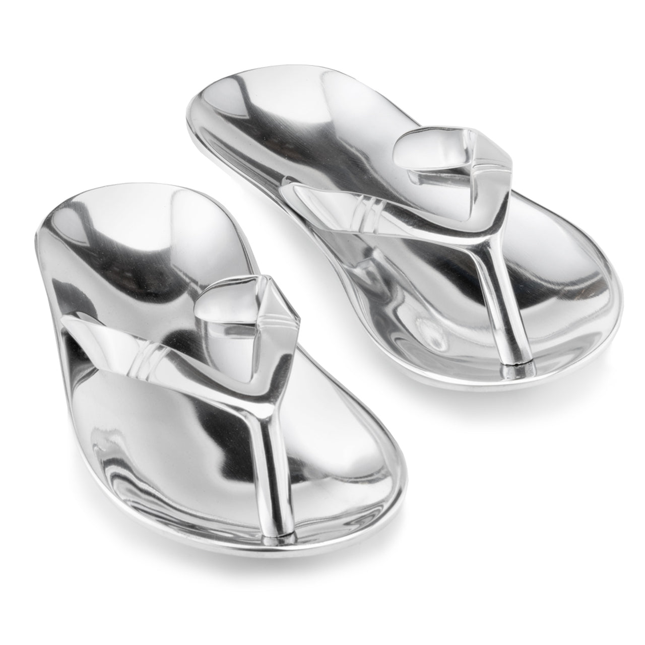 Enhance your home decor with the modern and coastal statement of these Metal Sandals. These sandals are perfect as an accent piece for your home office, coffee table, or console table. Crafted from cast aluminum, these sandals come as a pair and feature a buffed shiny silver luster.