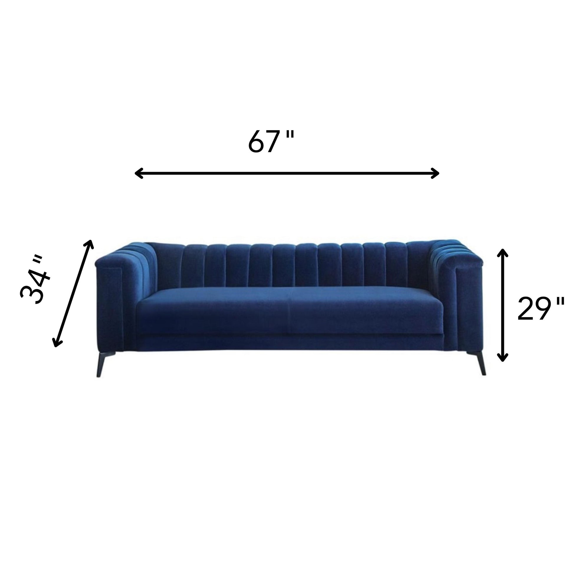 - Complete Contemporary Aesthetics: The combination of the matte blue velvet, channel tufting, and black metal legs creates a visually striking ensemble that's perfect for a modern home.
