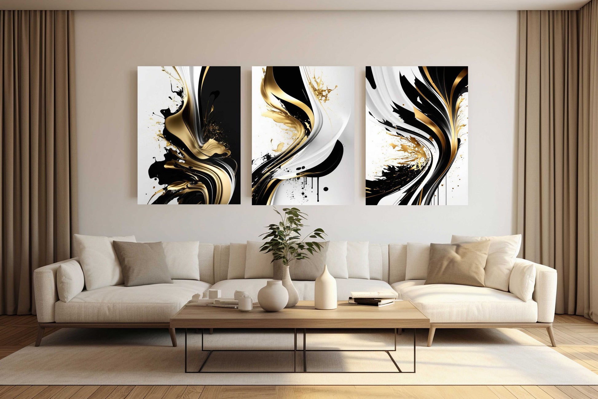 CICERO Gold & Black Swirl Acrylic Wall Print Art