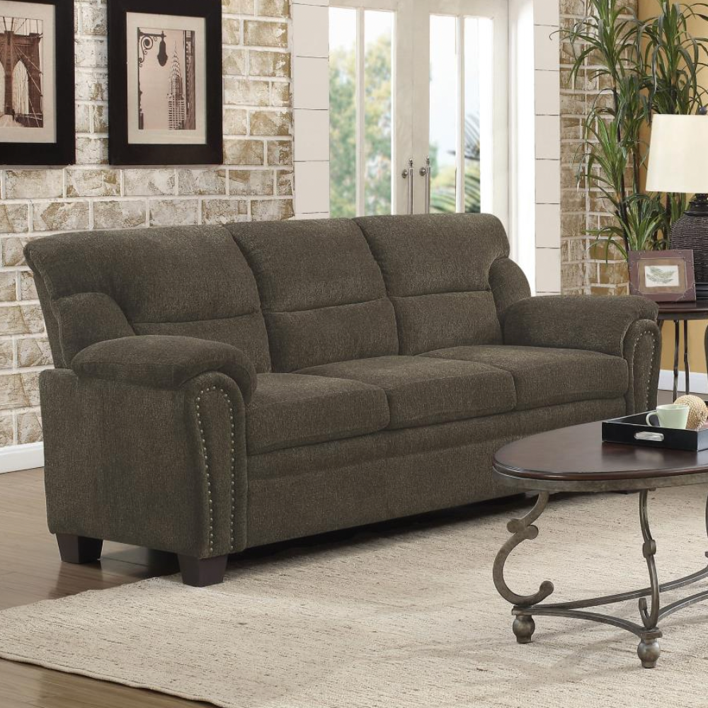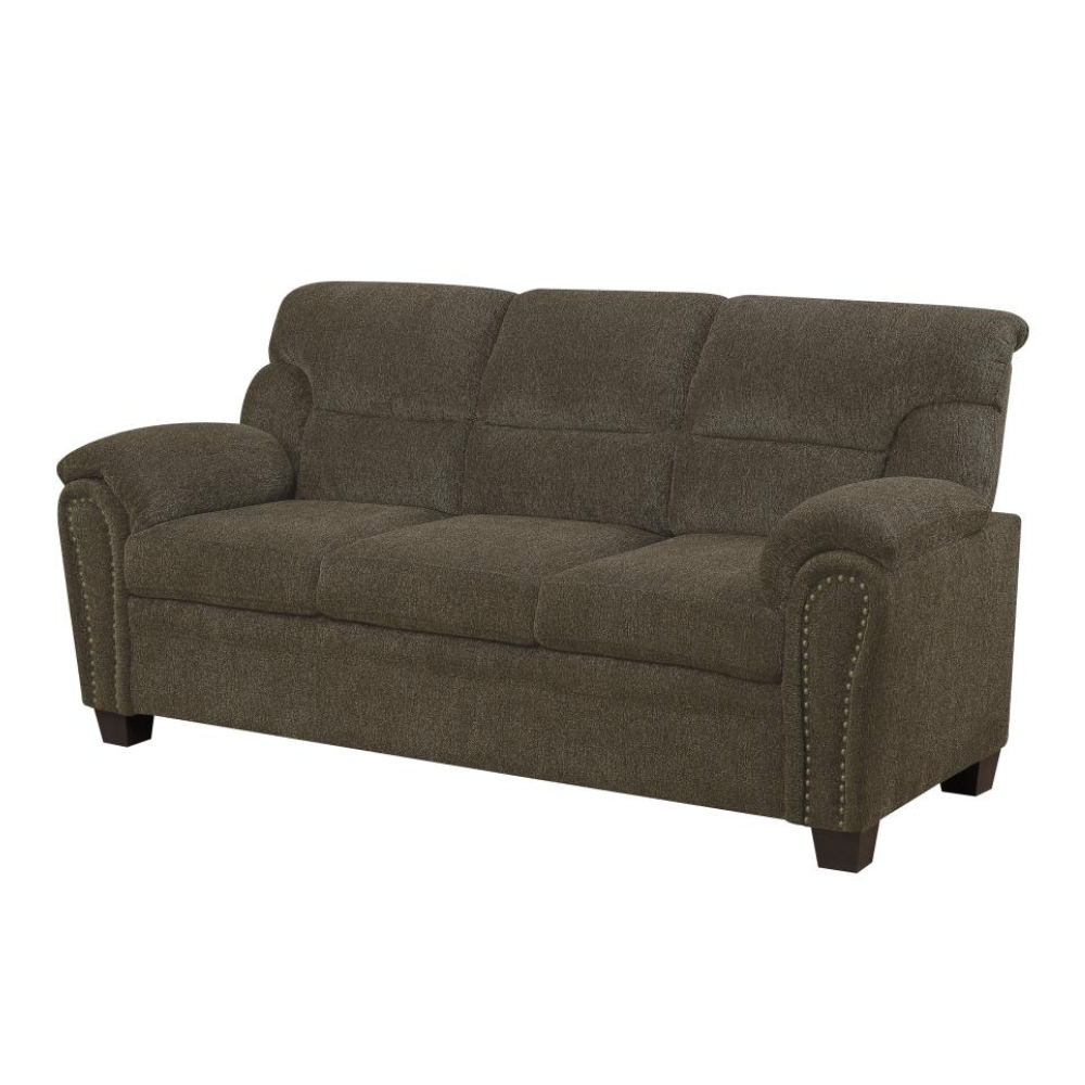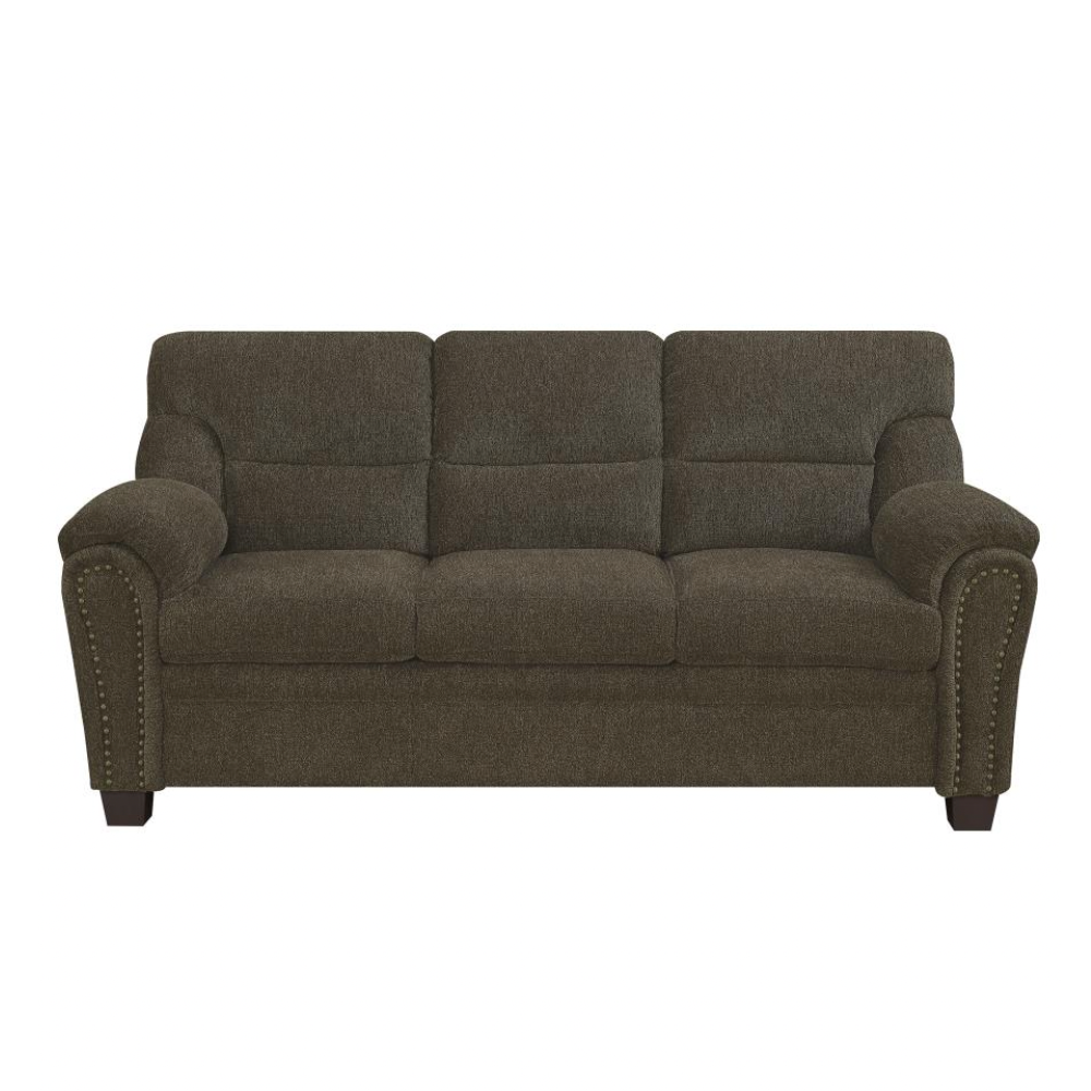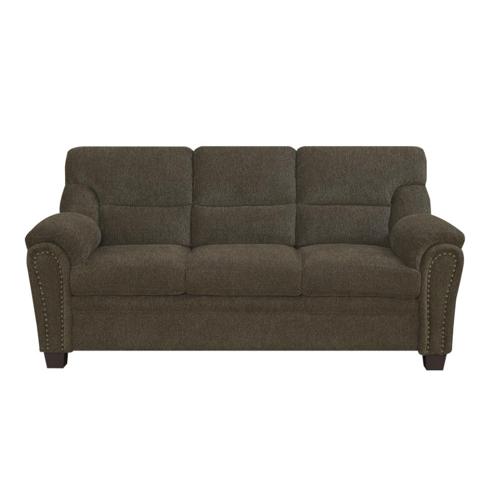 Introduce a sense of cool, classic glamour to your living room with this transitional sofa. Featuring curved arms and elegant nailhead trim, it combines casual comfort with timeless design. Plush chenille upholstery and supportive pocket coil seating ensure a cozy and stylish seating experience.