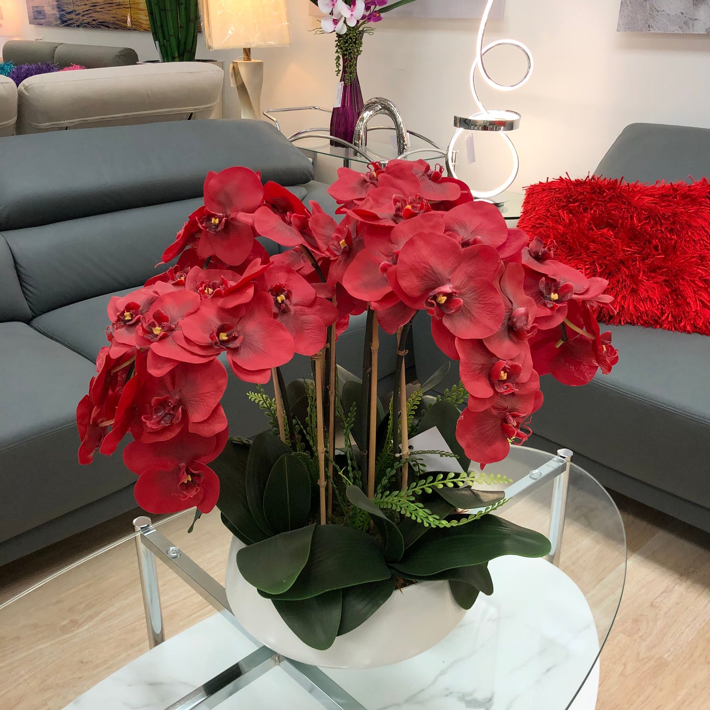 - Focal Point: The bold color of the red orchids draws attention and serves as a stunning focal point in any room.